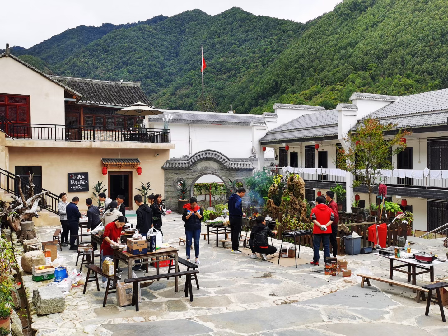 抵达古道下的名宿,已是下午时分。蔚蓝色的天空,在初秋时节,一尘不染,晶莹透明。大家安顿好以后,便开始为晚餐的烧烤盛宴忙碌起来,一时间,伴着欢声笑语,生火的、洗菜的、穿串的齐番上阵,高山流水之畔,闲庭小院之中,尽是温馨与美好。