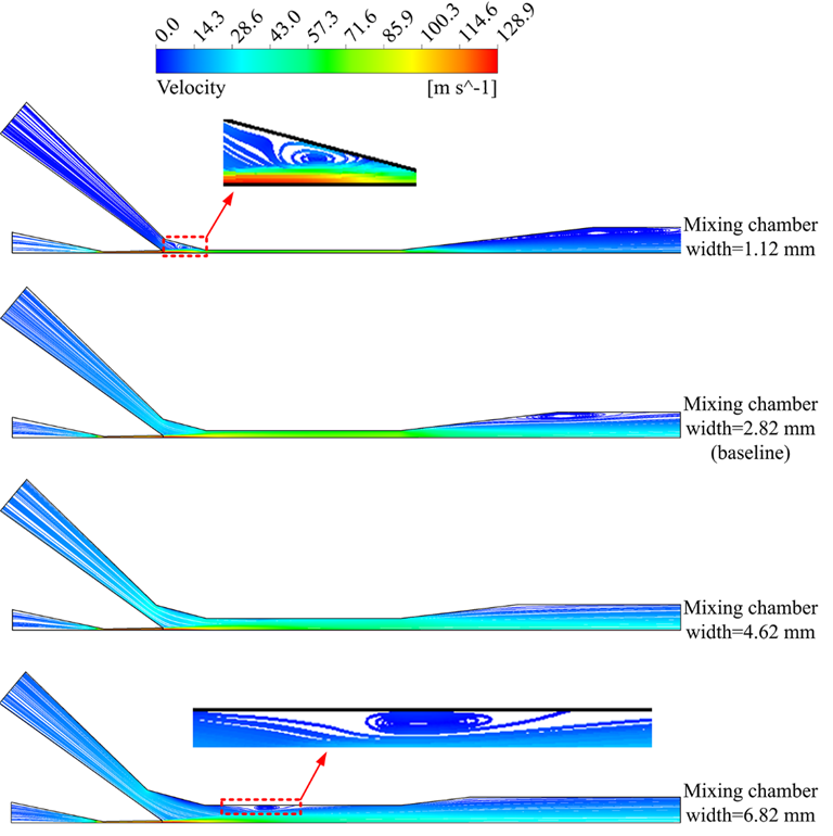 论文提出了一种新的非平衡CFD模型来模拟跨临界CO2引射器内部的非平衡闪蒸相变过程,模型考虑了CO2的亚稳态物性,耦合了压力驱动的空化相变机制和温度驱动的蒸发相变机制。结果发现,模型预测的相变位置接近可视化试验观测的相变位置,和压力驱动的空化相比,以温度驱动的蒸发在跨临界CO2引射器闪蒸流动中占主导。另外,论文讨论了不同喷嘴渐扩角(NDA)时主动流的膨胀状态和虚拟喉部的变化规律,基于敏感性分析研究了混合室长度、混合室宽度和扩压段角度对跨临界CO2引射器内部流场和引射系数的影响规律。