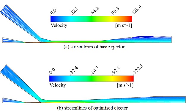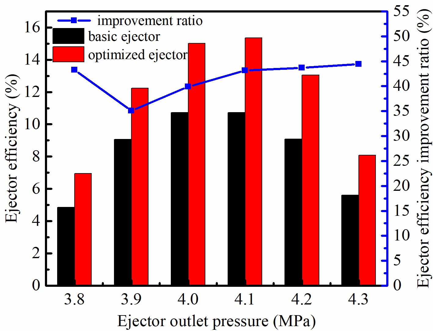 图5 基础引射器和优化引射器在不同引射器出口压力下的引射系数和引射器效率对比