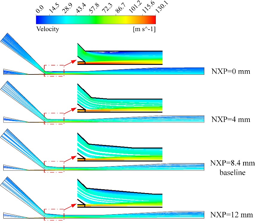 论文采用CFD模拟、响应面法和遗传算法对矩形跨临界CO2可视化引射器进行了结构参数分析和优化,获得了影响引射器性能的显著性几何参数,分析了不同结构参数间的相互作用对引射器性能的影响,对混合段宽度、混合段长度、扩压段角度、预混段角度和喷嘴距进行了优化。结果表明混合段宽度、预混段角度和喷嘴距对引射系数有显著影响,其中喷嘴距的影响最大;另外,混合段宽度和混合段长度、混合段宽度和喷嘴距、混合段长度和扩压段角度、混合段长度和喷嘴距、预混段角度和喷嘴距之间的交互作用对引射系数也有显著影响。优化后的引射器使引射系数和引射器效率均提高了41%以上,优化的引射器结构消除了引射器内部的旋涡结构,提高了引射流的速度。