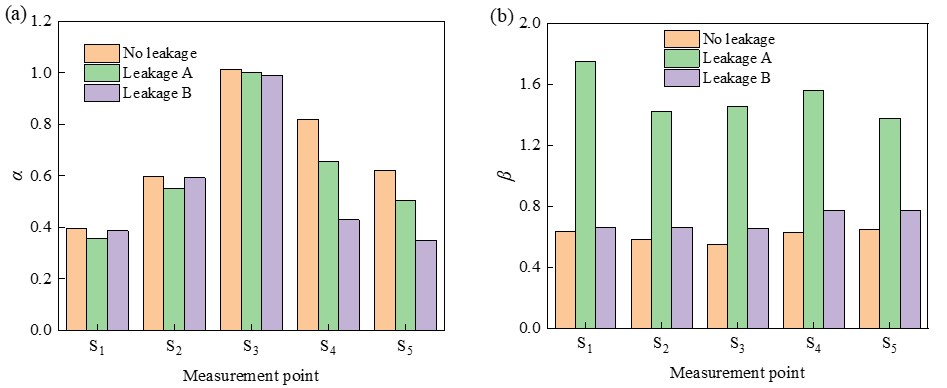 图3 不同管道工况下各测点的压力波衰减系数