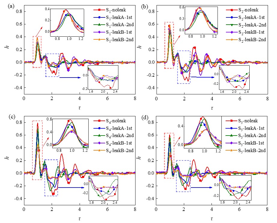 图2 不同管道工况下各测点的压力波信号