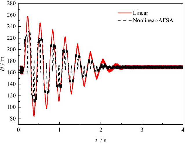论文基于改进的瞬时加速度模型和人工鱼群算法对含泵管道的水锤现象进行了瞬变流动分析和波动控制。在瞬变流模型中考虑了流体的压缩膨胀效应,将管路阀门的开度调节过程类比为旅行商问题,提出了一种阀门非线性调节的最优化策略。经验证的水力模型和优化算法分别对在不同泵阀场景进行了分析。对于含离心泵或无泵运行工况,非线性关阀策略可分别降低9.3%和11.4%的水锤波幅值,对于含容积泵情形,可实现34%的时间裕度及75.2%的波幅降低。在不同的关闭时长下,阀门曲线表现出截然不同的形状特性。本文所提出的控制策略不仅有利于水力输运及调节的实时控制,也为防护阀的设计提供了参考。