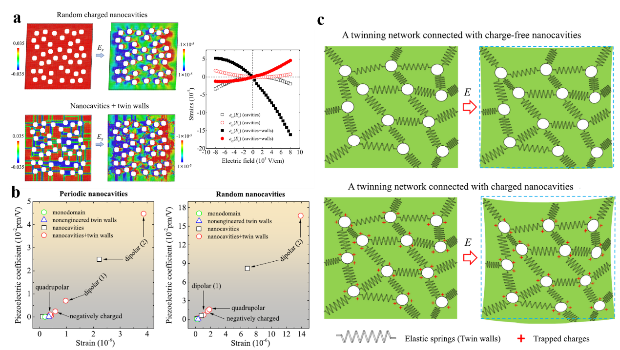 该研究成果近日以《纳米孔洞提升铁弹孪晶畴结构的压电响应》(Enhanced piezoelectricity in twinned ferroelastics with nanocavities)为题,发表于凝聚态物理领域的国际著名期刊Physical Review Materials上。英国剑桥大学地球科学系Salje教授,西安交通大学材料学院丁向东教授,李苏植教授为本文通讯作者,博士生卢广明为第一作者,参与工作的还有西安交通大学材料学院的孙军教授。西安交通大学为本文的第一作者单位和通讯作者单位。
