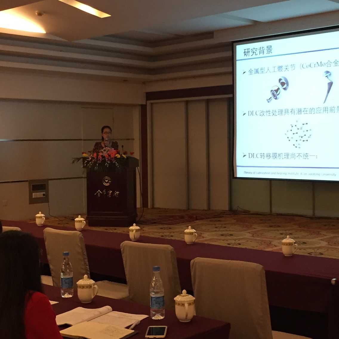 2015年10月14日-10月18日, “第十二届全国摩擦学大会暨2015年全国青年摩擦学学术会议”在成都召开。在董老师带领下,课题组博士生唐光海、郭飞飞、吴红星、郭俊德代表我实验室参加大会,并作分会场报告。其中报告题目分别为:《TiNi形状记忆合金表面微凸起制备及摩擦磨损性能初步研究》(唐光海),《水溶液对CoCrMo合金表面DLC转移膜的影响》(郭飞飞),《微/纳米颗粒润滑机理探讨分析》(吴红星),《可注射PCL-PEG-PCL水凝胶/牛血清蛋白的摩擦学行为》(郭俊德)。相关成果得到了与会者的一致好评,并与同行进行了深入交流!