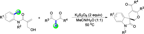 Oxidative Spirocyclization of Hydroxymethylacrylamides with 1,3-dicarbonyl Compounds.