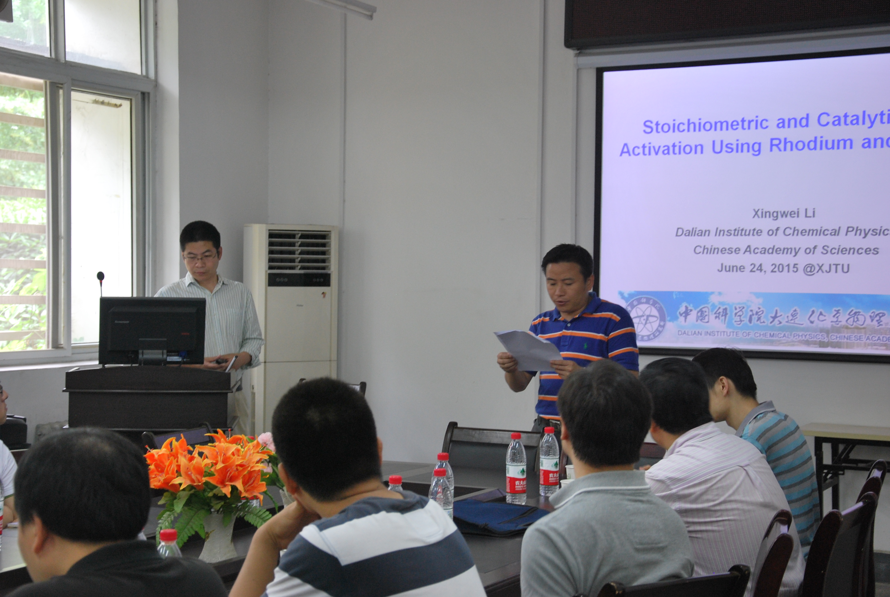 值此西安交通大学120周年校庆期间,应交大化学学科邀请,武汉大学雷爱文教授和大连化物所李兴伟教授于2016年4月6-8日访问我校并参加理学院交叉学科高端论坛。