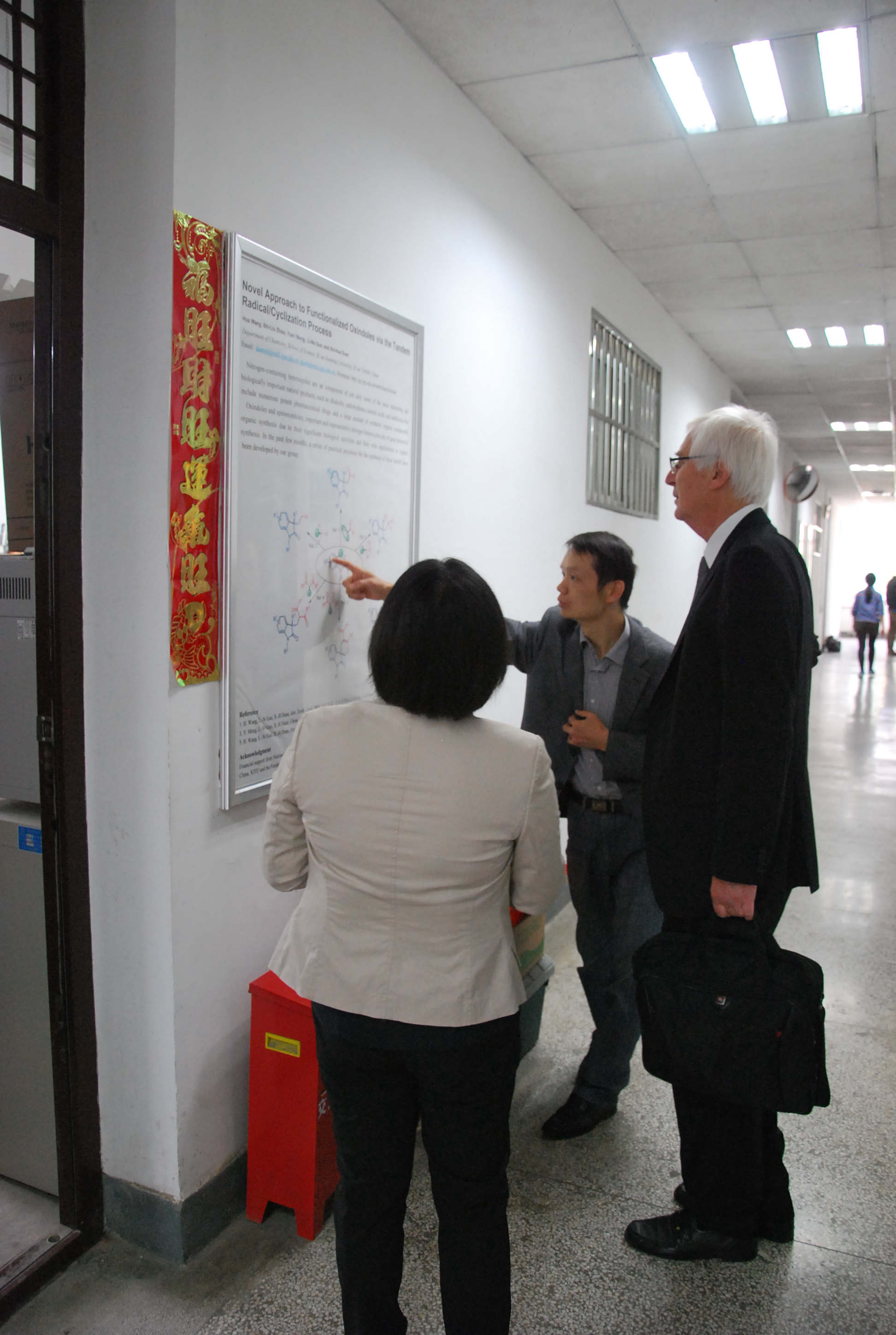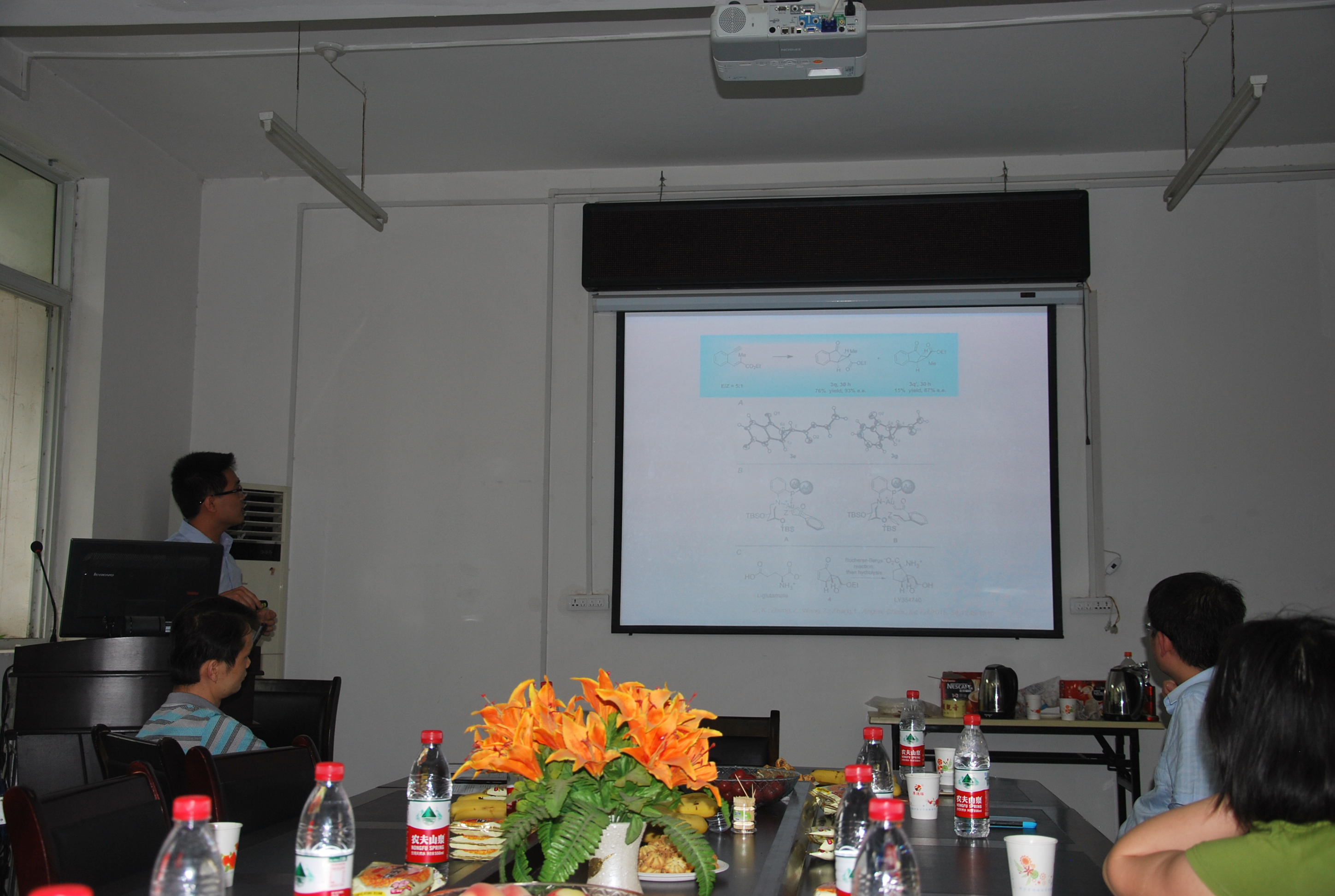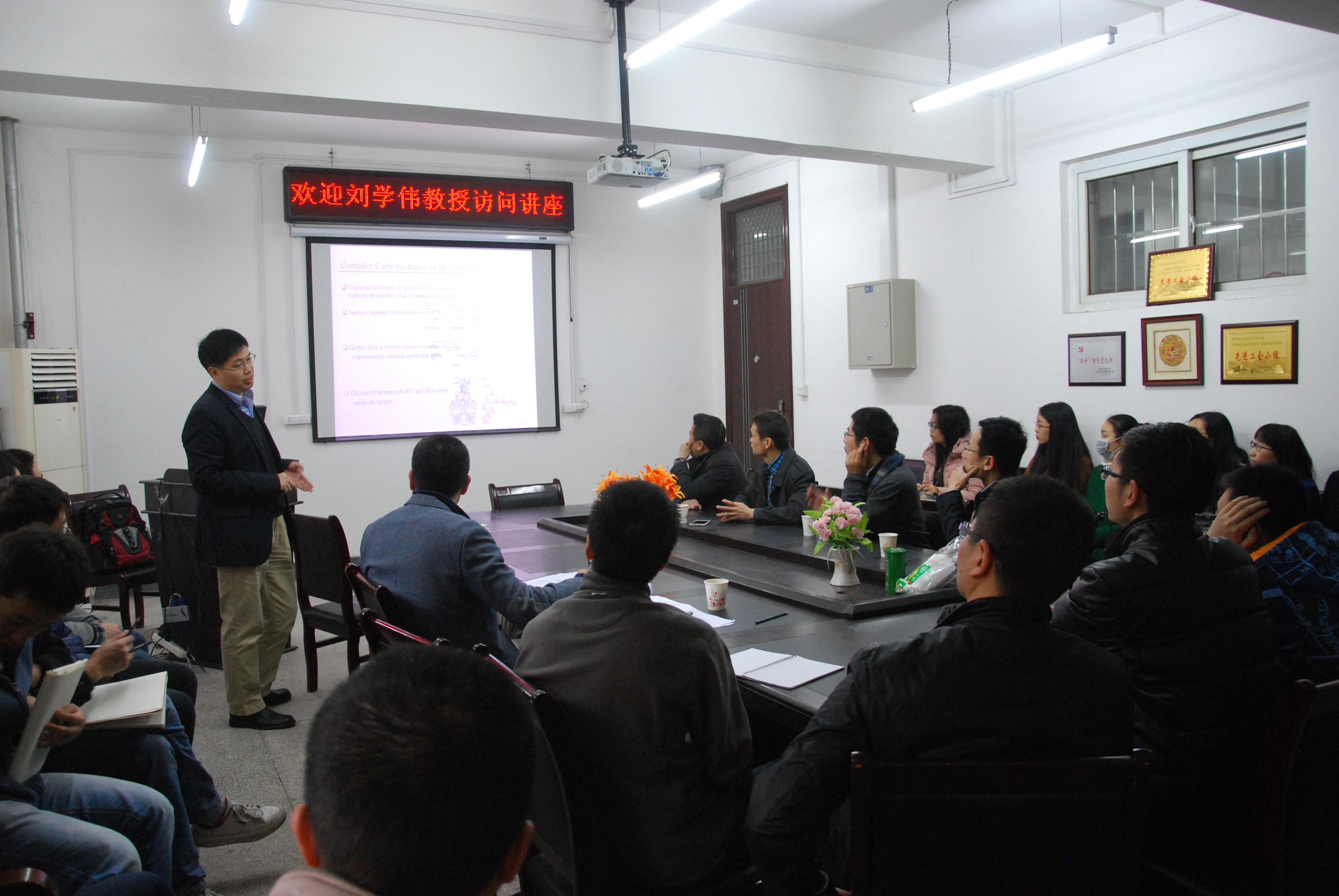 应化学学科邀请,新加坡南洋理工刘学伟副教授于2015年11月17-20日访问我校,并于18日上午10:00在化学楼207报告厅作关于“Glycosciences: From Synthetic Methods to Glycobiology”的学术报告。在本次报告中刘老师详细的介绍了他们小组近年来利用钯催化Tsuji-Trost反应以及邻基参与在糖的官能团化修饰方面的研究进展并系统介绍了这些衍生化的糖在分子生物学方面的应用。报告后刘老师与部分老师和同学进行了热烈的讨论并参观307实验室。此外,刘老师还与学校的相关老师就双方进一步的合作进行了沟通。