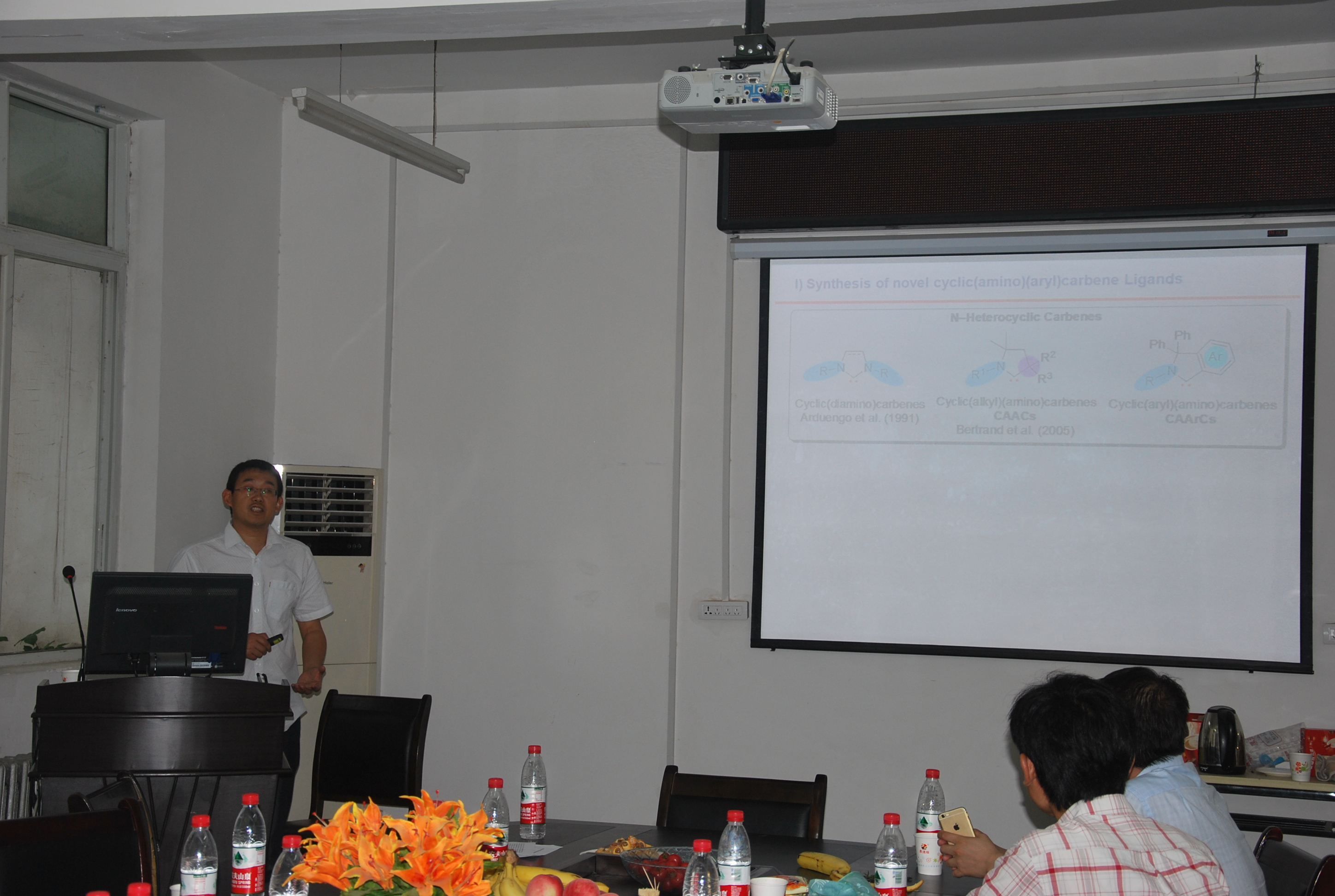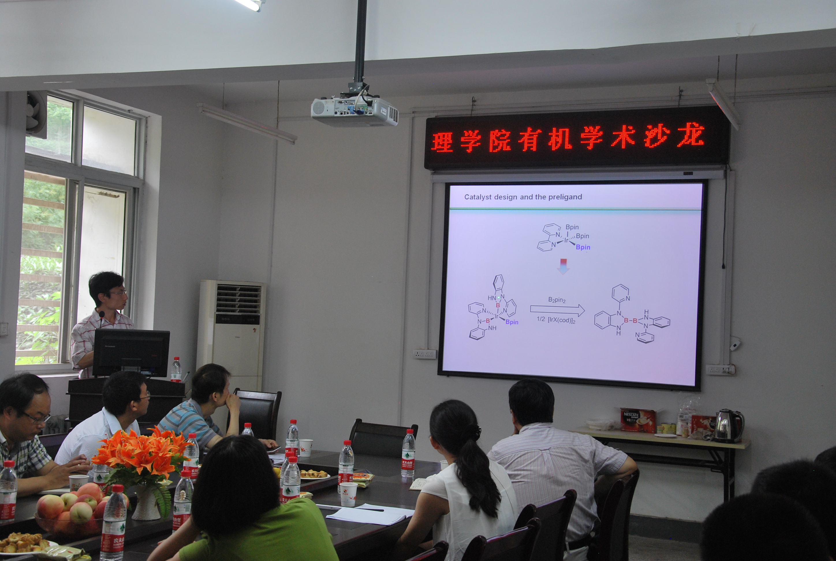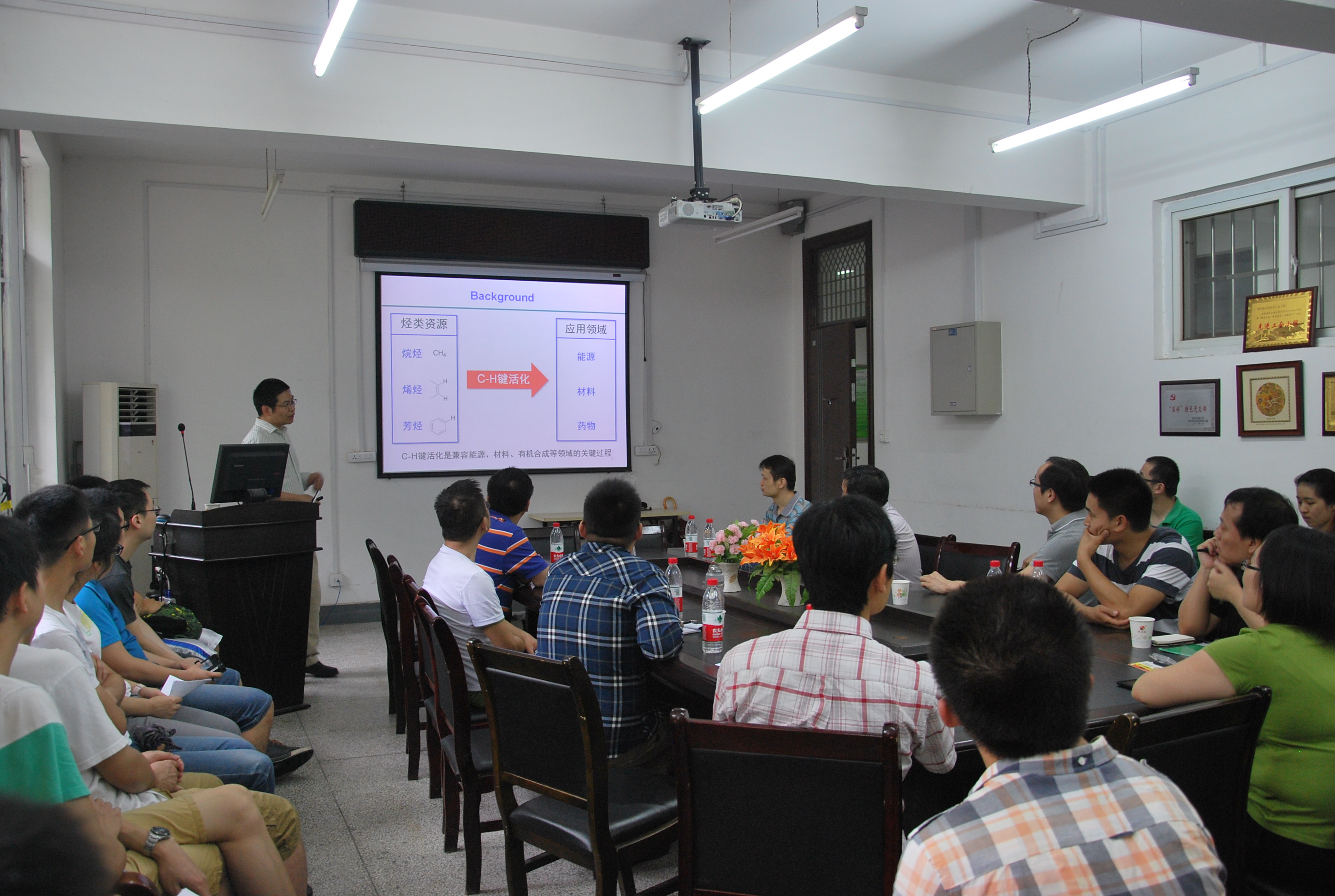 应307实验室邀请,大连化学物理研究所李兴伟研究员于2015年6月23-24日访问我校,并于24日上午10:00在化学楼207报告厅作关于“Stoichiometric and Catalytic C-H Activation Using Rhodium and Iridium.”的学术报告。在本次报告中李老师详细的介绍了他们研究小组近年来利用Rh(III)催化的碳-氢官能团化方面的研究进展并系统介绍了这种策略在合成一系列结构复杂的杂环化合物上的应用。此外,李老师还介绍了他们小组在反常氮杂卡宾方面的研究。报告后李老师与部分老师和同学进行了热烈的讨论并参观307实验室。