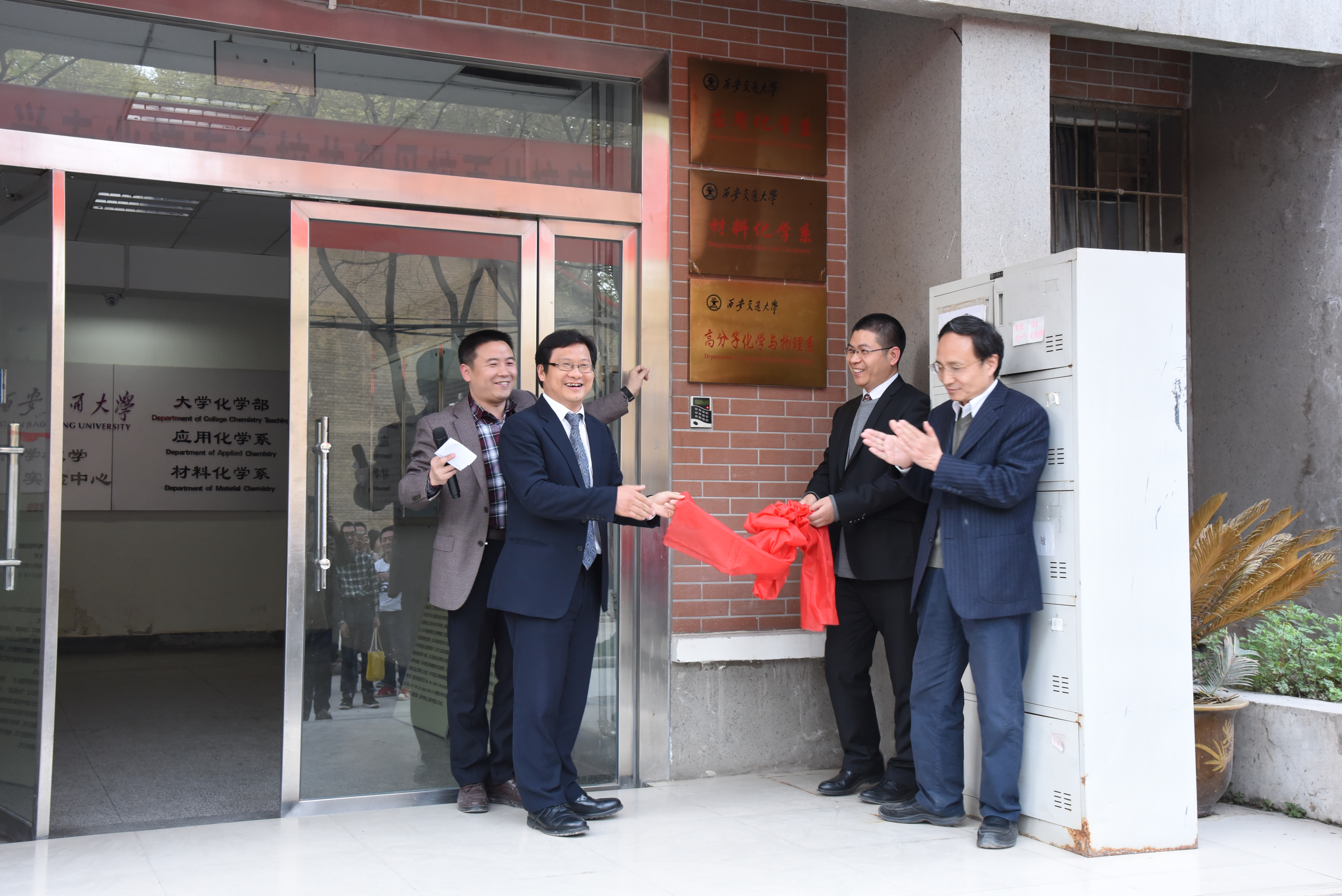 大连化物所李兴伟教授的报告题目是:高价金属催化的烃类碳氢键活化与官能化:类型、活化策略及机理。在报告中李兴伟教授着重介绍了他们小组近几年利用Rh(III)进行碳-氢活化反应的研究。李老师课题组关于碳-氢键活化反应机理的深入而详细的研究给在座的师生留下了深刻的印象。李兴伟教授的报告内容新颖,讲解深入浅出,激起了广大师生的浓厚兴趣,报告后,师生们就报告中的一些机理与新方法等与李老师进行了深入的交流和讨论。报告会后雷爱文教授和李兴伟教授还应邀作为嘉宾与理学院领导共同为理学院高分子化学与物理系成立揭牌。本次学术活动献礼交大百廿华诞!*************************************************************************************************************************************