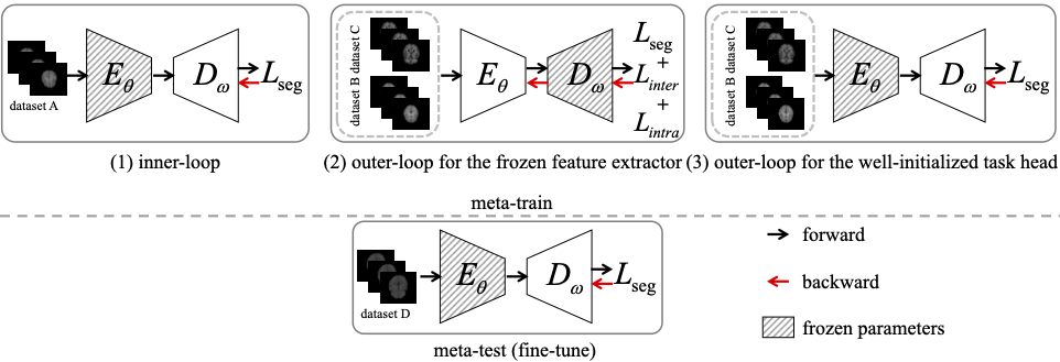 Yongheng Sun, Fan Wang*, Jun Shu, Haifeng Wang, Li Wang*, Deyu Meng, Chunfeng Lian*, "Dual Meta-Learning with Longitudinally Consistent Regularization for One-Shot Brain Tissue Segmentation Across the Human Lifespan", ICCV 2023. (Co-corresponding authors)