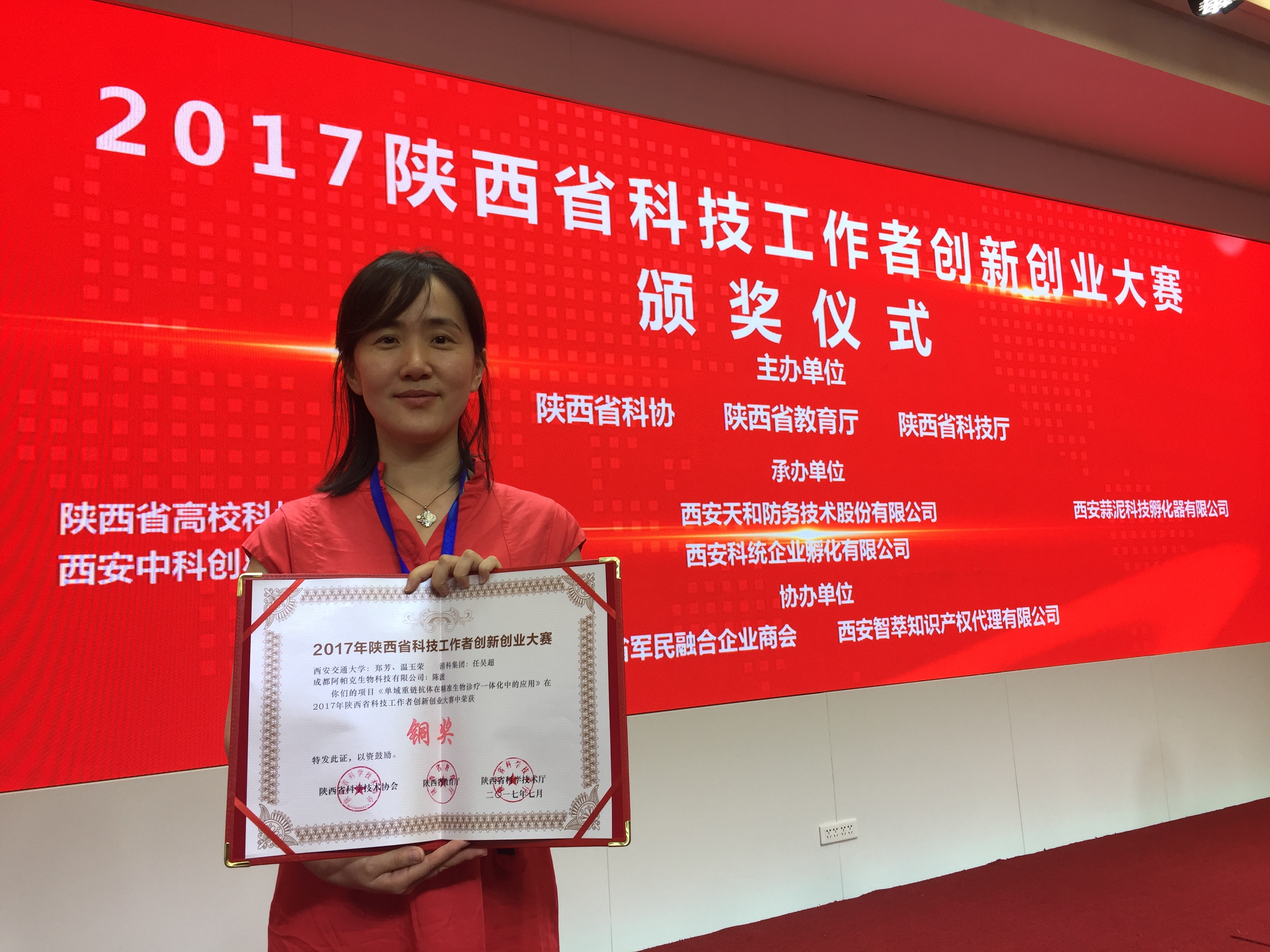 团队成员2017年陕西省科技工作者创新创业大赛获得铜奖
