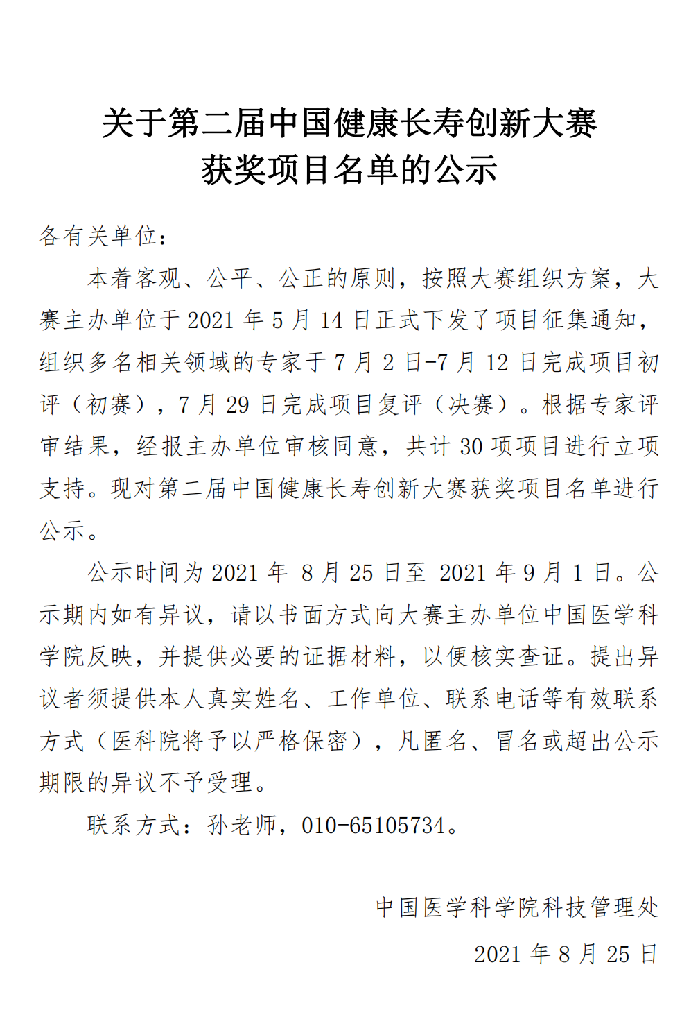 文章标题:课题组获得第二届中国长寿创新大赛立项资助