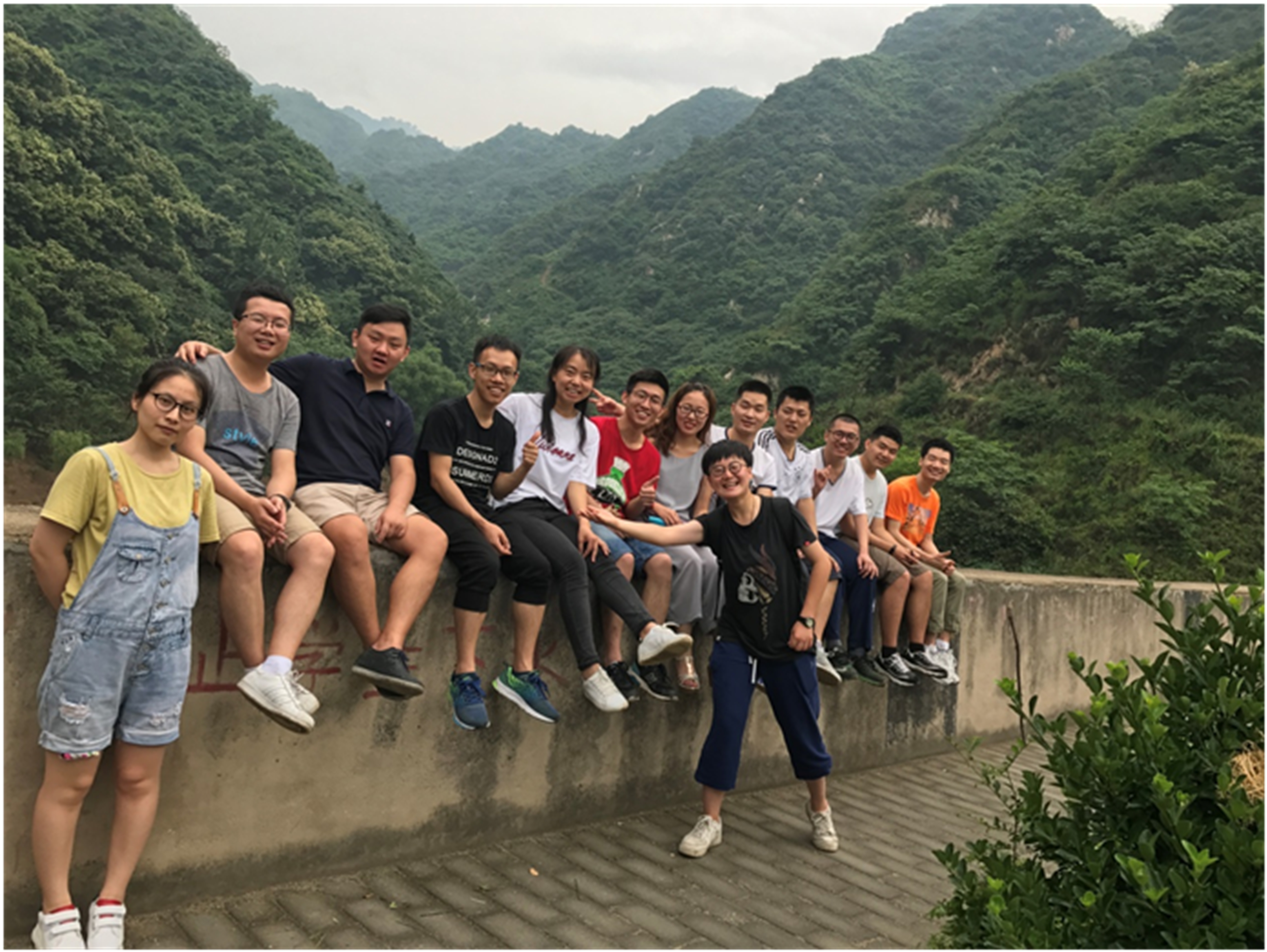 午后爬山,伴着辗转的怡人景色,大家一路谈笑歌唱,平日里埋头科研的师兄们也笑语连连,一展平日难的一见幽默体质,段子逗得大家前仰后合。群山环抱间,大家来张大合影,没错,这就是航院颜值最高的科研团队!