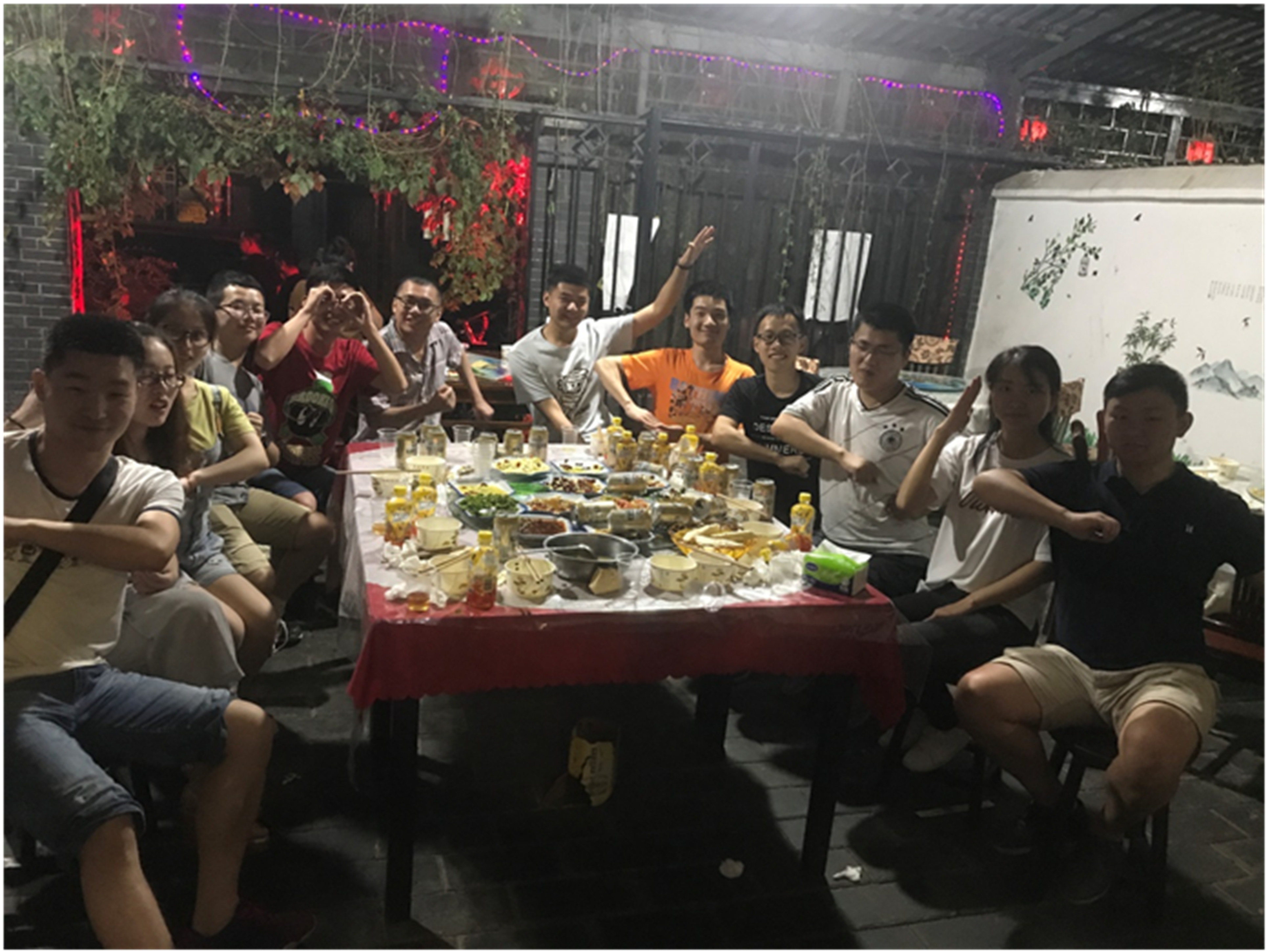 夕阳西落,饥肠辘辘的小伙伴们迫不及待地在农家乐的餐桌上大快朵颐。吃着家常菜,玩着小游戏,酒到酣时,这才是科研人最可爱的样子。