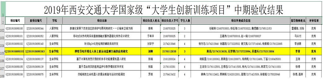 恭喜刘帅等同学的项目入选西安交通大学“2019年西安交通大学国家级大学生创新训练项目”!