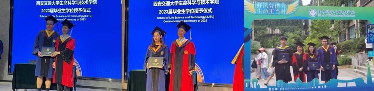 方天舒同学自2020年加入课题组以来,主要从事微针贴片的研发与应用研究。硕士期间以第一作者身份在《分析化学》上发表论文1篇,作为共同作者发表SCI论文3篇。曾获西安交通大学研究生特等奖学金、蒋大宗奖学金,并连续两年获“西安交通大学优秀研究生称号”。2023年7月1日,方天舒同学被正式授予西安交通大学生物医学工程硕士学位。毕业后,他将前往香港城市大学继续深造。