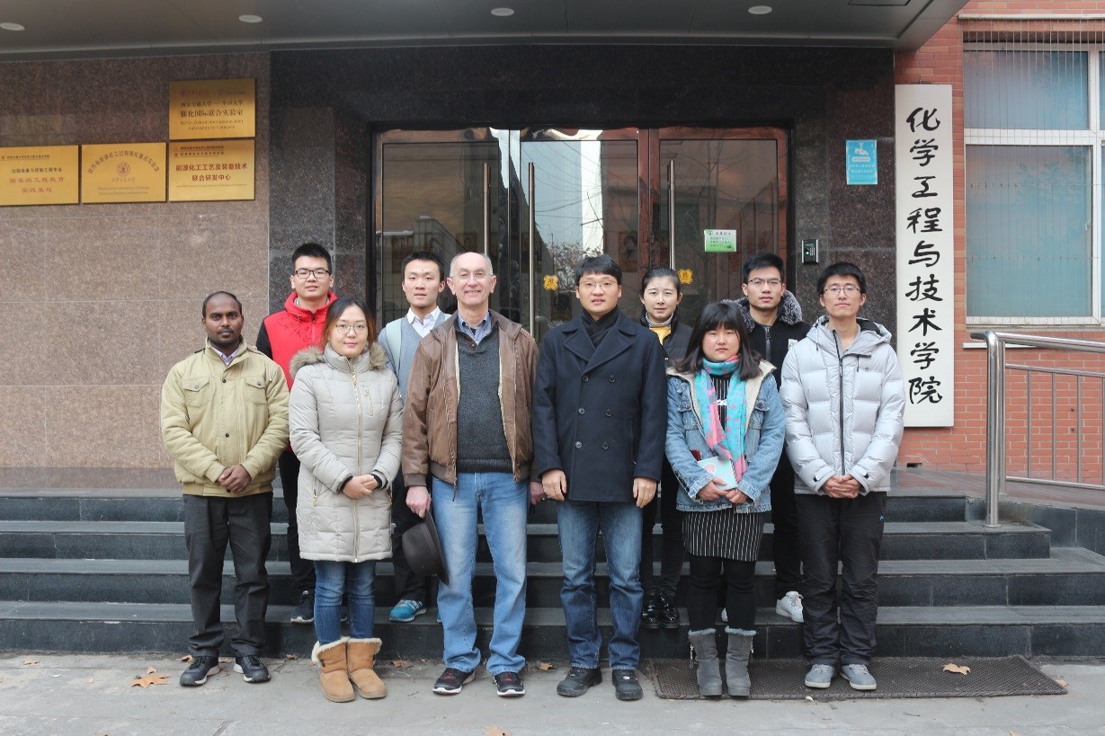2018年1月6日,受费强教授的邀请,,西安交通大学客座教授、美国国家可再生能源实验室Philip Pienkos博士来访我课题组进行学术交流,并对实验室建设与发展过程中的重点问题进行了现场指导。Philip Pienkos教授的此次到访首先让研究生充分的接触新知识,提升自己的视野以及创新能力,为进一步建立标准、前沿、国际化的实验室奠定基础。其次,在与Philip Pienkos教授交流的过程中,研究生的英语口语以及表达能力有了极大的提升,对今后出国交流具有一定的帮助作用。Philip Pienkos教授非常支持和鼓励本课题研究生出国交流学习,不断提升科研实力和创新能力。最后,Philip Pienkos教授与课题组全体人员进行了合照。