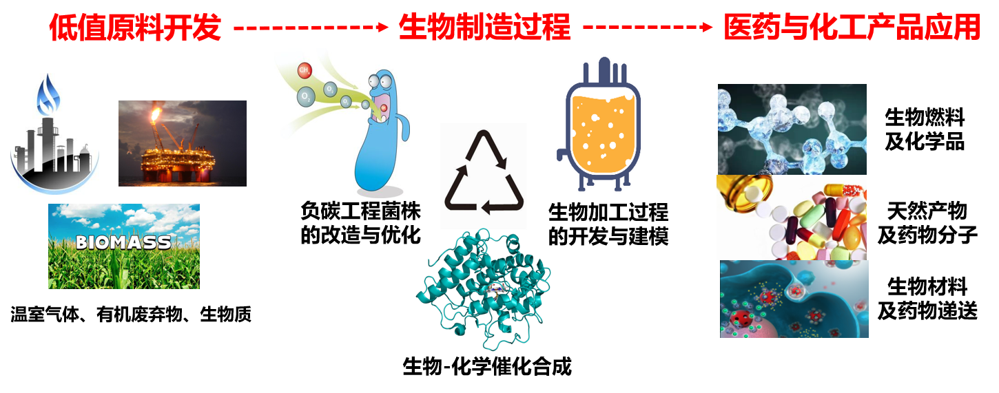 一碳资源生物转化团队(生化工程课题组)依托国家合成生物创新技术中心、西安市一碳化合物生物转化技术重点实验室、陕西省生物合成与医用化工创新团队,长期以工业微生物为研究对象,利用合成生物学和高密度发酵等先进技术改造和优化高性能细胞工厂,合成制造低成本、低碳排放和可持续发展的平台化合物、生物材料、生物基能源、高附加值产品(药物中间体、生物传感器、饲料等),建立生物制造的全链条研发平台。课题组研发的技术和工艺可广泛利用于生物储碳与减排、生物炼制、细胞工厂、生物制药、精细化工、生物材料、生物饲料以及其他高新领域。