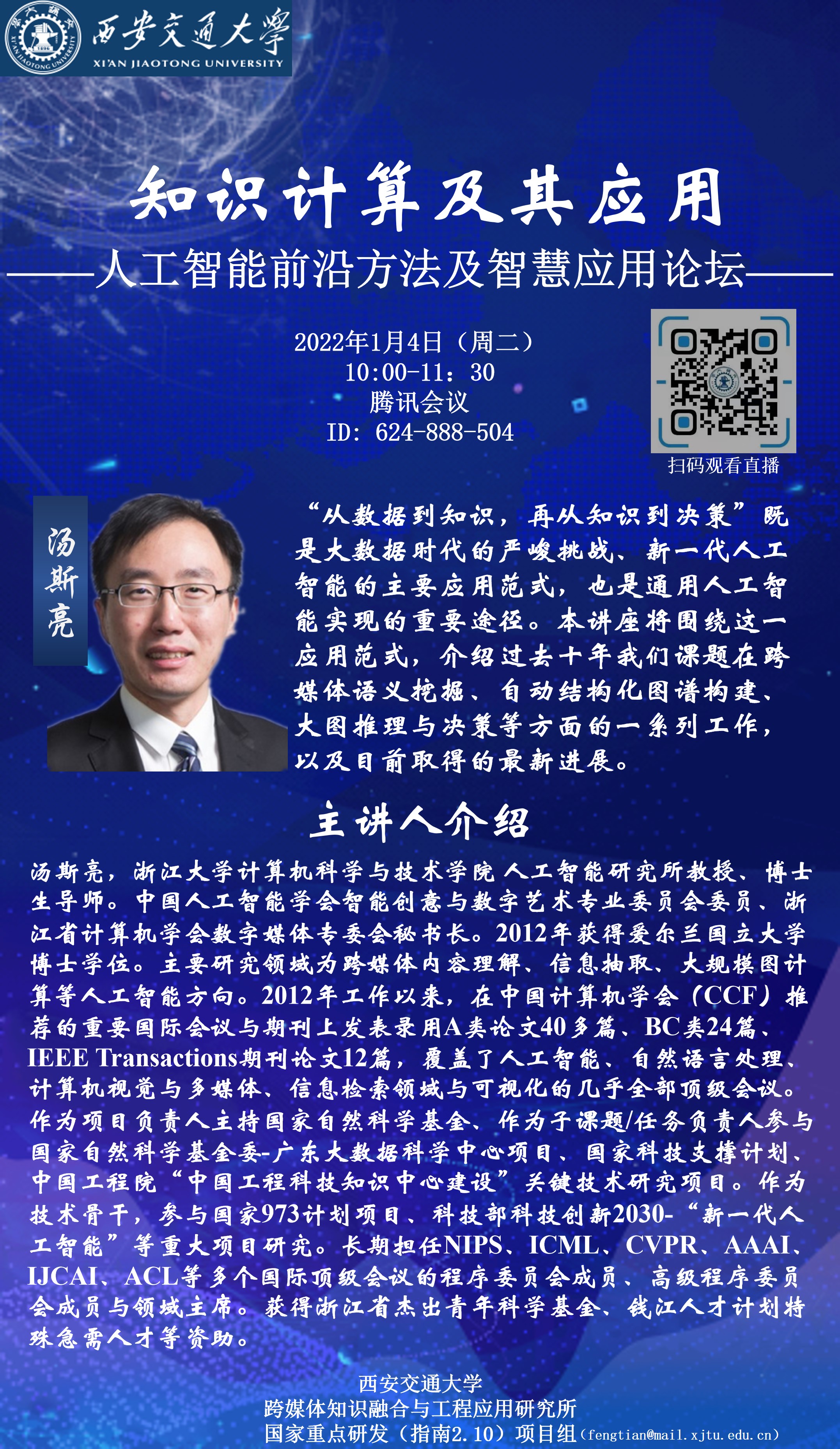 人工智能前沿方法与智慧应用论坛之一汤斯亮教授做报告
