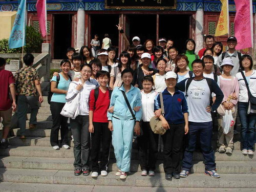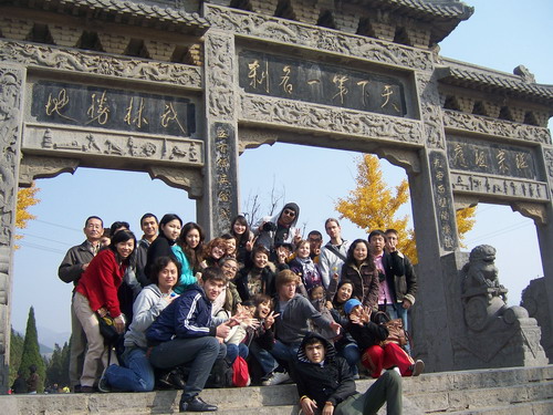 看到武术学校的小孩子们拳打脚踢,这两位也跃跃欲试了,这招是……白什么晾翅? 终于到少林寺了,快合个影吧!