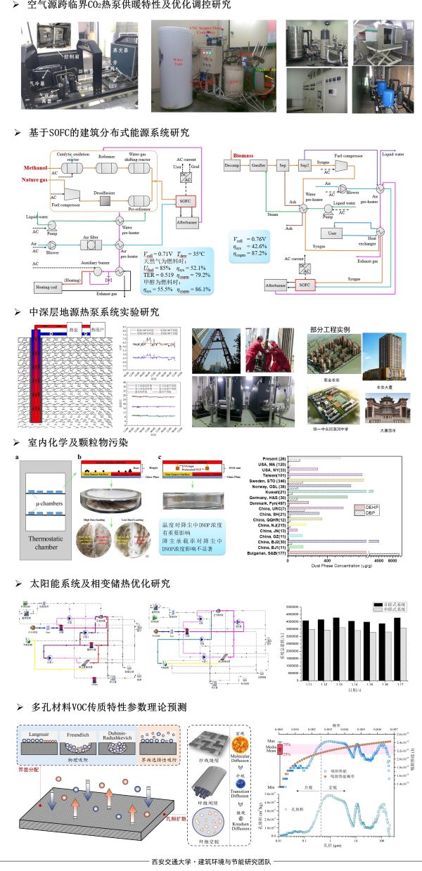 西安交通大学建筑节能研究中心王沣浩教授团队现有成员9人,教授2人,副教授6人,特聘研究员1人。团队多年来致力于开展建筑节能与可再生能源利用领域基础理论和技术应用研究。团队近年来在中深层地热利用技术、高效空气源热泵技术、浅层地源热泵技术、综合能源系统优化等研究方向上不断探索,并与清华大学、德国亥姆霍兹环境研究中心、中国科学院地质与地球物理研究所、香港城市大学、澳大利亚伍伦贡大学等科研院所及行业内知名企业保持长期科研合作。团队在建筑节能与可再生能源利用领域成果卓著,近年来在Applied Energy、Energy Conversion and Management、Renewable Energy、Solar Energy、Energy & Buildings、Energy、Applied Thermal Engineering、太阳能学报、工程热物理学报、制冷学报等国内外顶级期刊发表文章近百篇,申报授权发明专利20余项。团队成果曾获中国工程建设科学技术奖、中国煤炭工业科学技术奖、中国制冷学会科学技术进步奖、陕西省建设工程科学技术进步奖及陕西省土木建筑科学技术奖等奖励7项,主参编技术标准和行业发展报告近十项。