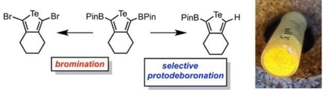 11. William Torres Delgado; Christina A. Braun; Michael P. Boone; Olena Shynkaruk; Yanyu Qi; Robert McDonald; Michael J. Ferguson; Przemyslaw Data; Shawan K. C. Almeida; Inara de Aguiar; Gabriel L. C. de Souza; Alex Brown;* Gang He;* Eric Rivard,* Moving Beyond Boron-Based Substituents To Achieve Phosphorescence in Tellurophenes. ACS Appl. Mater. Interfaces 2018, 10, 12124-12134.