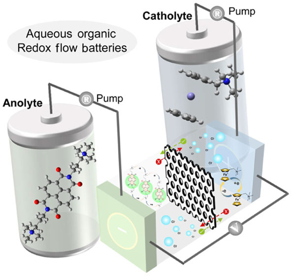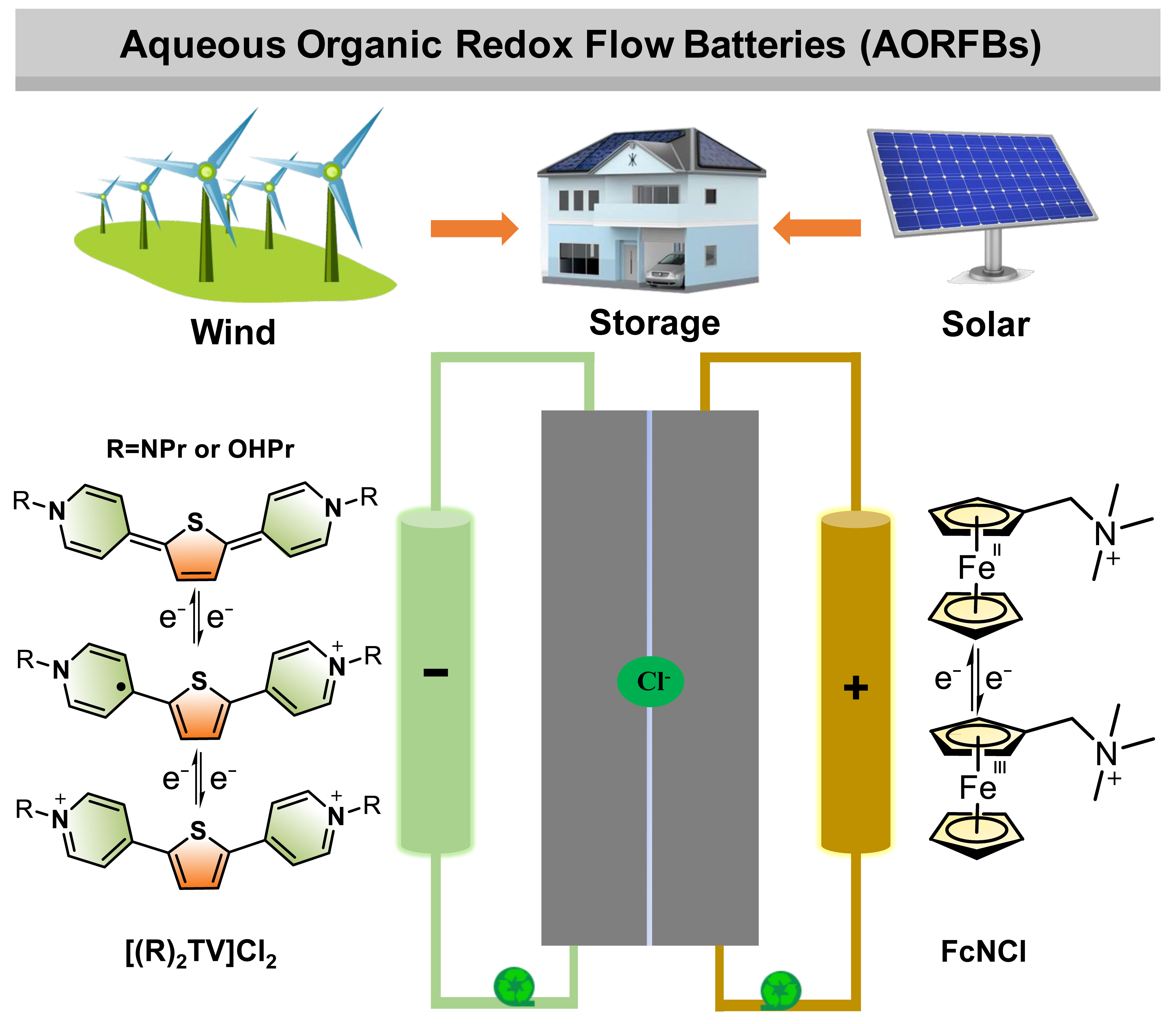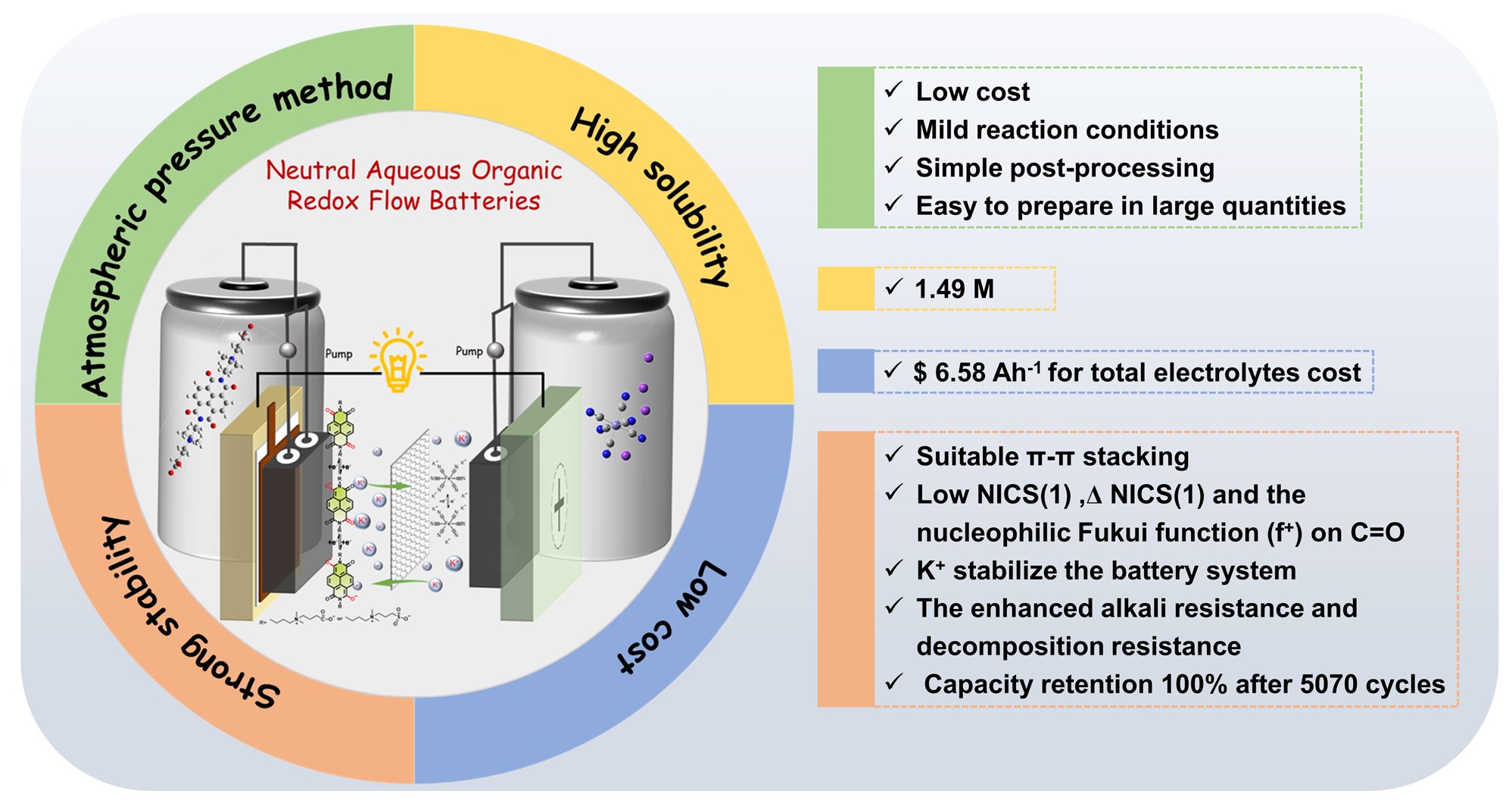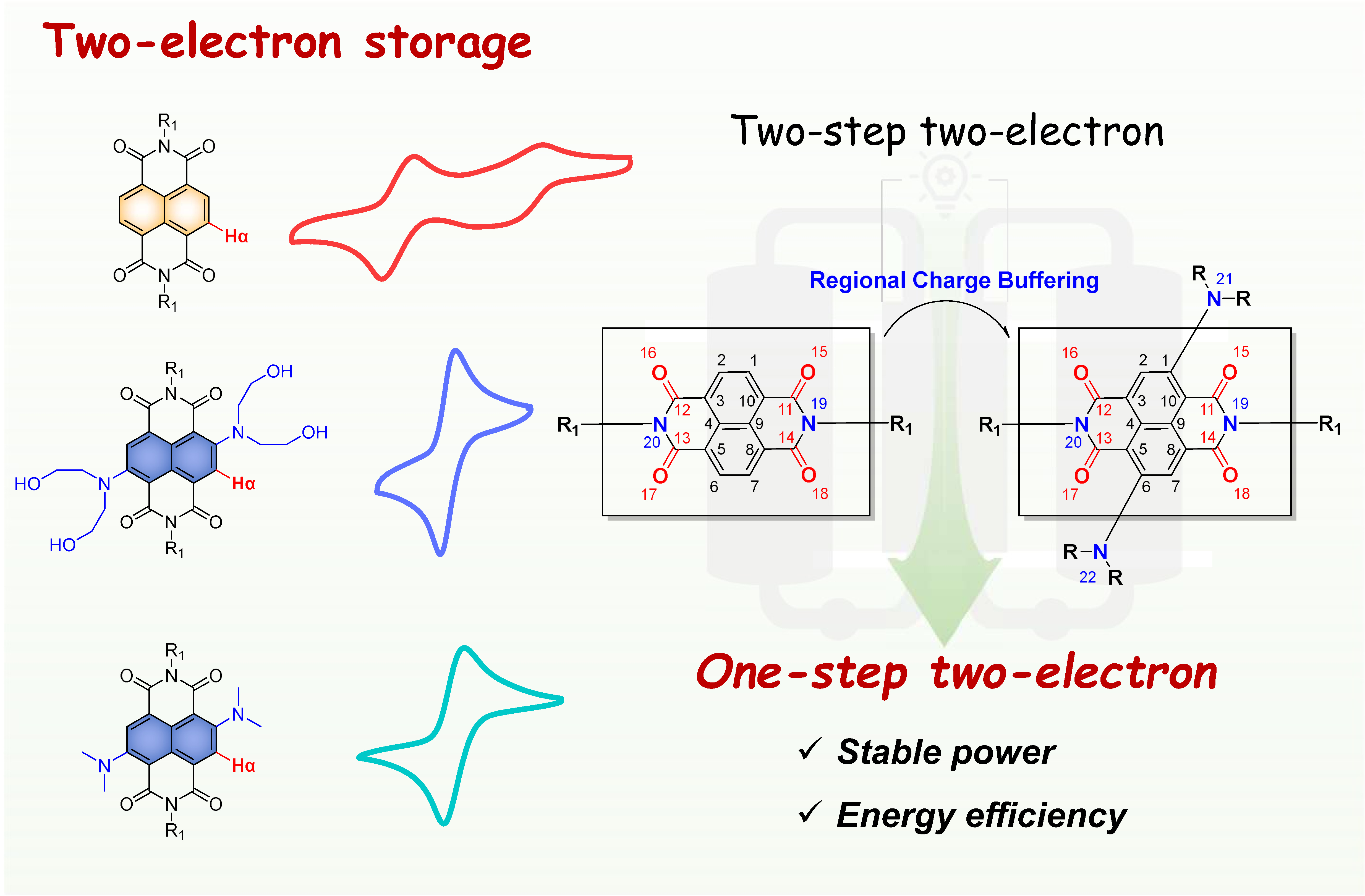 Realizing one-step two-electron transfer of naphthalene diimides via a regional charge buffering strategy for aqueous organic redox flow batteries.