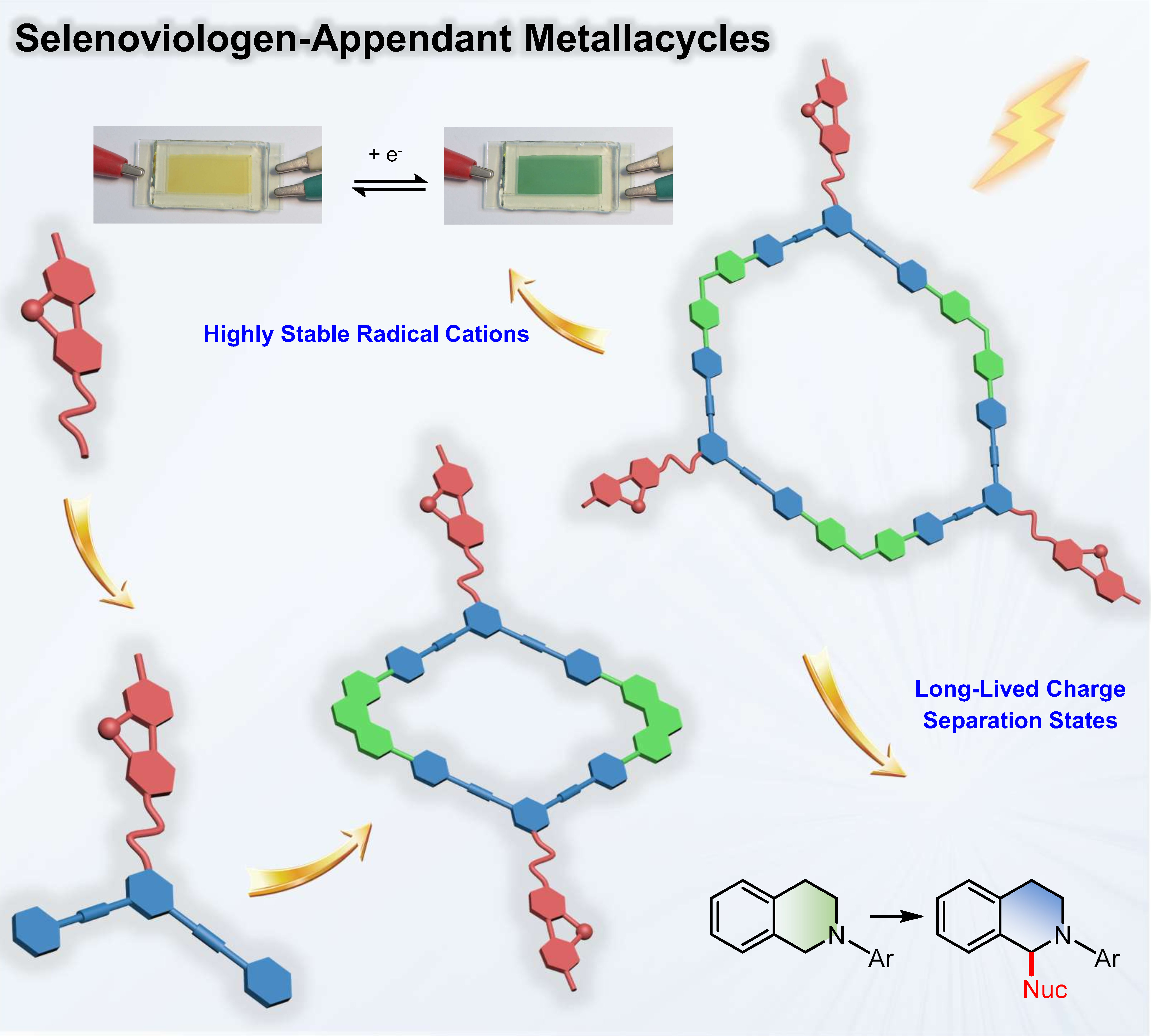 55. Sikun Zhang, Lingzhi Ma, Wenqiang Ma, Long Chen, Kai Gao, Shi Yu, Prof. Dr. Mingming Zhang, Lei Zhang and Gang He*. Selenoviologen-Appendant Metallacycles with Highly Stable Radical Cations and Long-Lived Charge Separation States for Electrochromism and Photocatalysis.