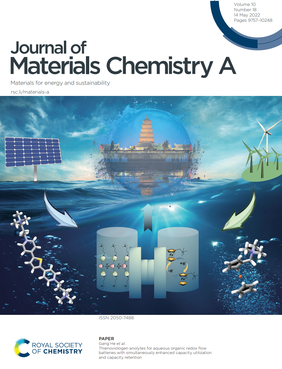 XJTU News: http://news.xjtu.edu.cn/info/1033/186322.htm54. Xu Liu +, Xuri Zhang +, Guoping Li, Sikun Zhang, Bingjie Zhang, Wenqiang Ma, Zengrong Wang, Yueyan Zhang, and Gang He*. Thienoviologen anolytes for aqueous organic redox flow batteries with simultaneously enhanced capacity utilization and capacity retention.J. Mater. Chem. A, 2022, 10, 9830-9836