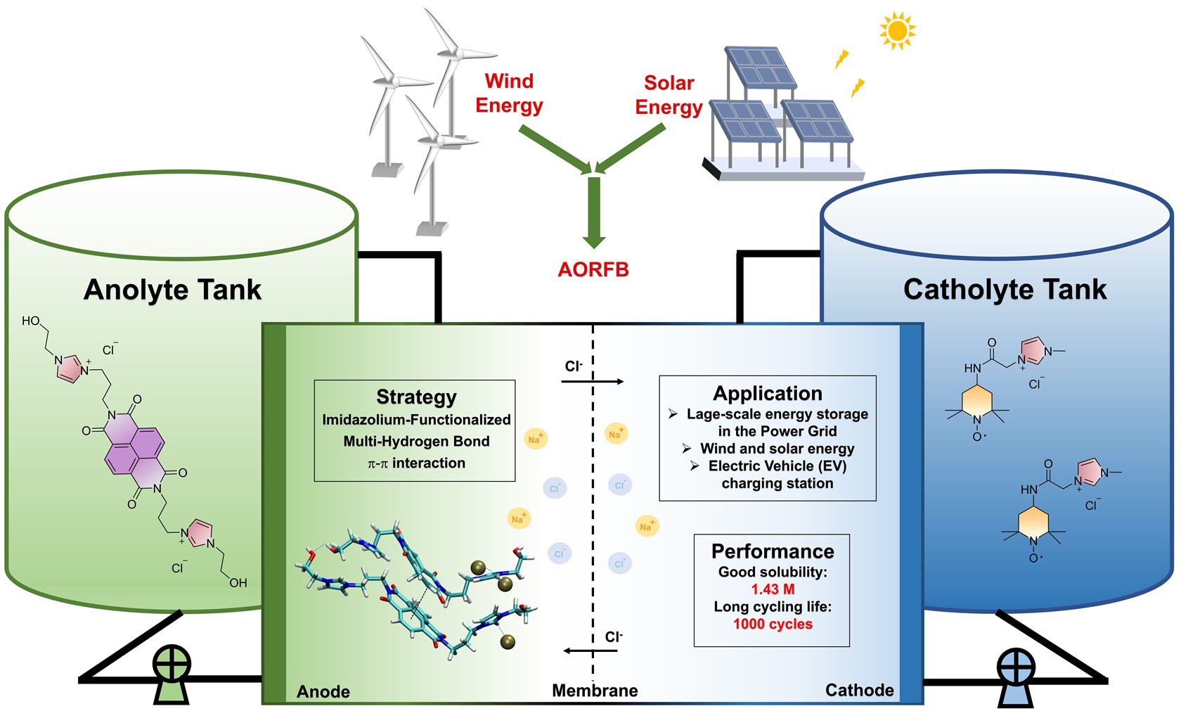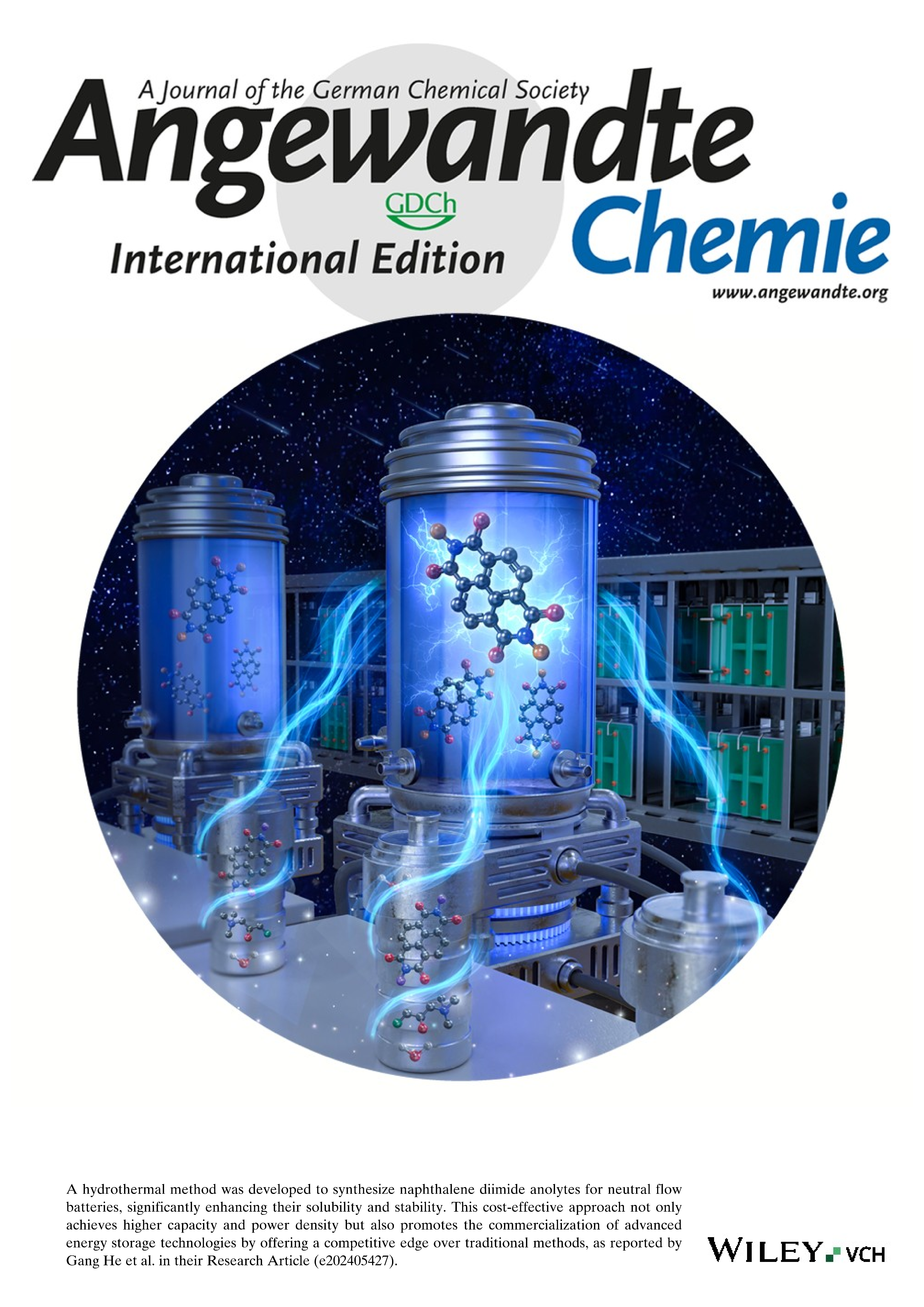 88. Xuri Zhang, Xu Liu, Zengrong Wang, Chenjing Liu, Heng Zhang, Haiyan Yu, Qing Zhao, Gang He*. Multi-hydrogen bond engineered imidazolium-functionalized naphthalene diimides for stable two-electron storage in aqueous organic flow batteries.