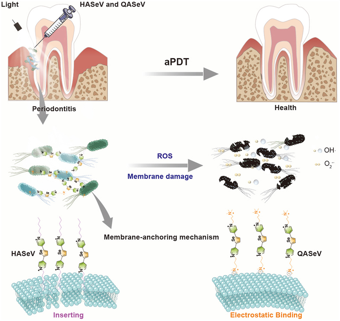 Membrane-anchoring selenophene viologens for antibacterial photodynamic therapy against periodontitis via restoring subgingival flora and alleviating inflammation.