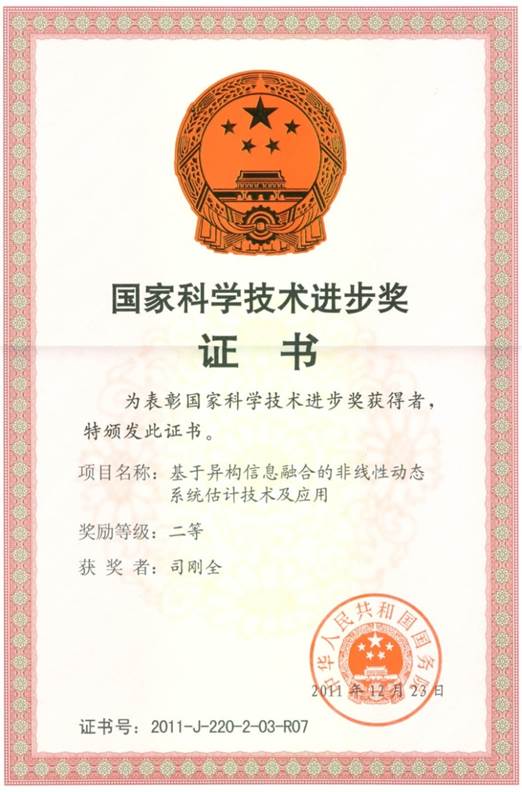 2011年荣获国家科技进步二等奖(第7完成人,西安交通大学第四完成人)