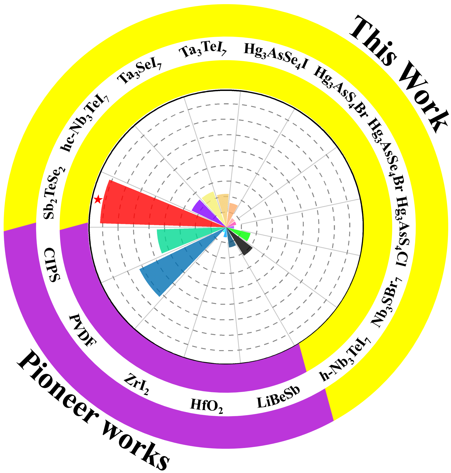 46. Yuqiang Fang†, Yue Liu†, Niuzhuang Yang†, Gang Wang†, Wen He, Xinyi Zhou, Shian Xia, Dong Wang, Jierui Fu, Jiapeng Wang, Yang Ding, Ting Yu, Chengyan Xu, Liang Zhen, Junhao Lin*, Gaoyang Gou*, Yang Li*, Fuqiang Huang*, "Above-Room-Temperature Ferroelectricity and Giant Second Harmonic Generation in 1D vdW NbOI3", Adv. Mater. 36, 2407249 (2024). Featured in 低维材料前沿 微信公众号