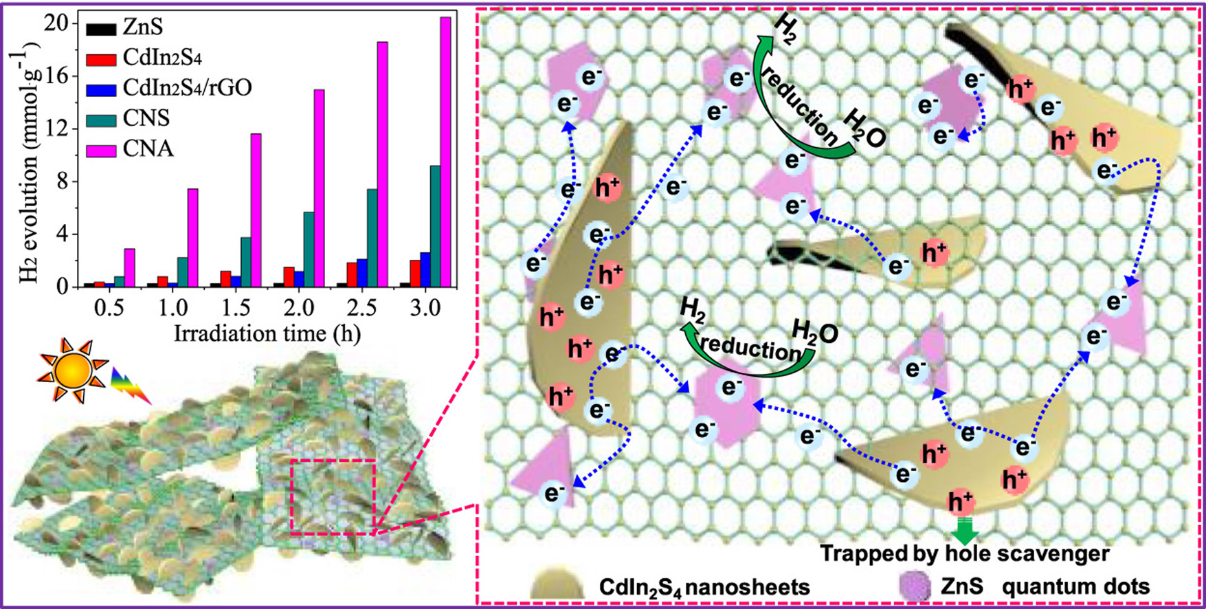 Xue C., An H., Yan X., Li J., Yang B., Wei J., Yang G*. Spatial charge separation and transfer in ultrathin CdIn2S4/rGO anosheet arrays decorated by ZnS quantum dots for efficient visible-light-driven hydrogen evolution, Nano energy, 2017, 39, 513-523.>>Fulltext Link
