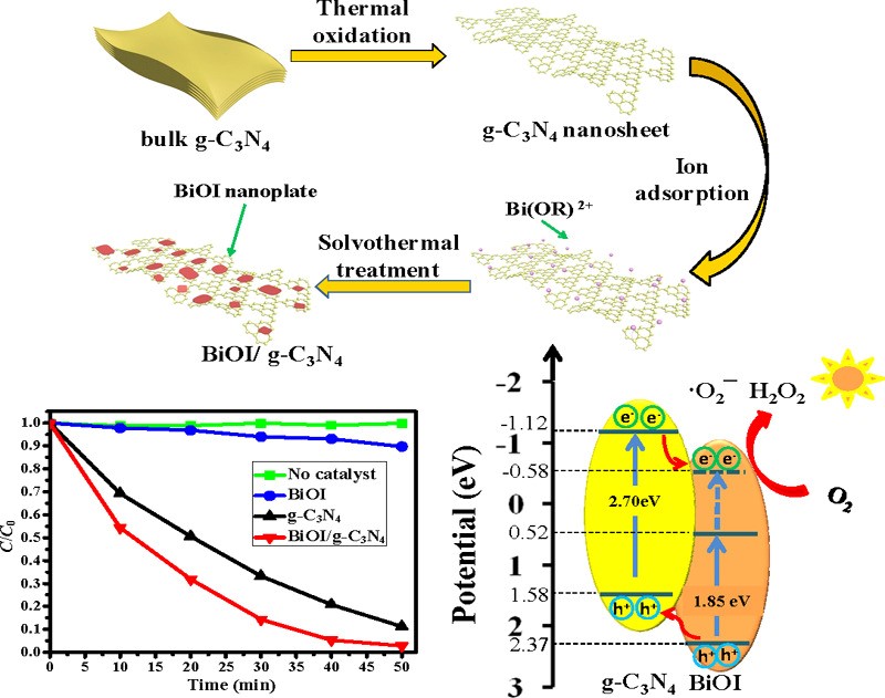 An, H., Lin, B., Xue, C., Yan, X., Dai, Y., Wei, J., Yang G*. Formation of BiOI/g-C3N4 nanosheet composites with high visible-light-driven photocatalytic activity[J]. Chinese Journal of Catalysis, 2018, 39(4): 654-663. DOI: 10.1016/S1872-2067(17)62927-9