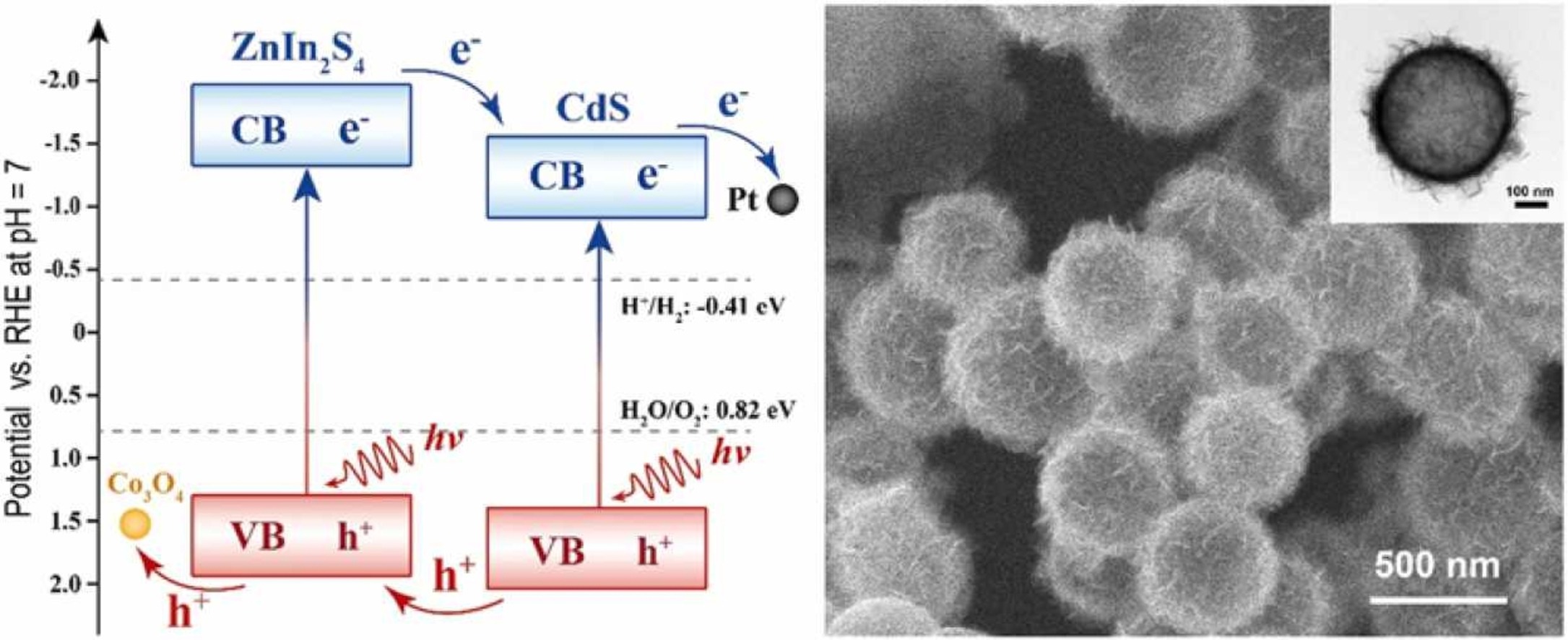 Li, H., Chen, Z. H., Zhao, L., Yang G*. Synthesis of TiO 2@ ZnIn 2 S 4 hollow nanospheres with enhanced photocatalytic hydrogen evolution[J]. Rare Metals, 2019, 38(5): 420-427. DOI: 10.1007/s12598-019-01253-y