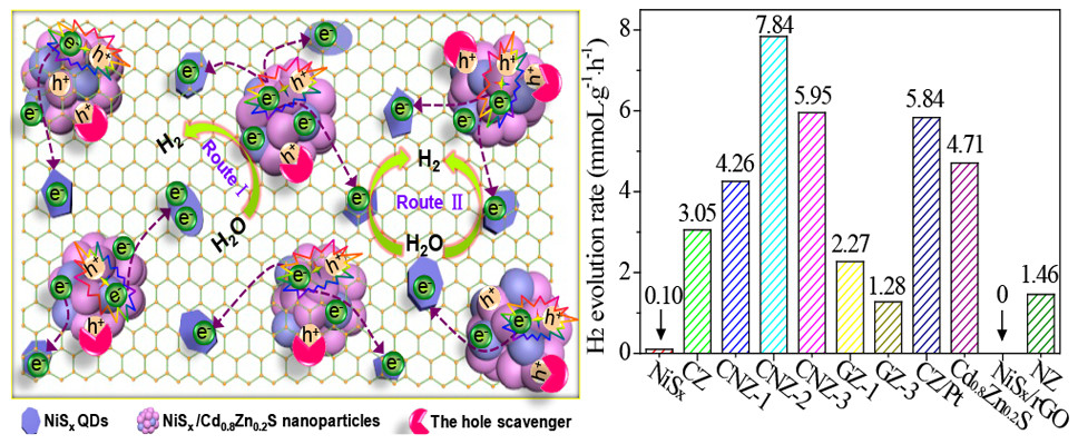 Xue C., Li H., An H., Yang B., Wei J., Yang G*. NiSx Quantum Dots Accelerate Electrons Transfer in Cd0.8Zn0.2S Photocatalytic System via rGO Nanosheet “Bridge” towards Superior Visible-Light-Driven Hydrogen Evolution, ACS Catalysis, 2018, 8, 1532−1545.>>Fulltext Link