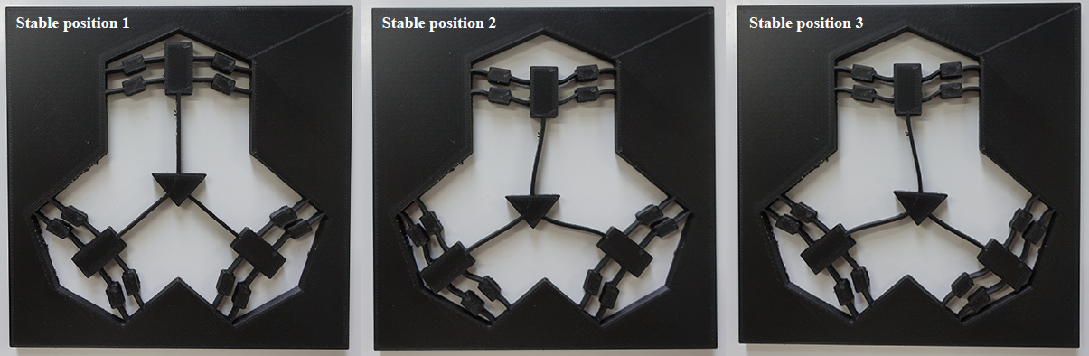 论文提出一种非中继的三稳态机构,可以三个稳态之间自由切换。