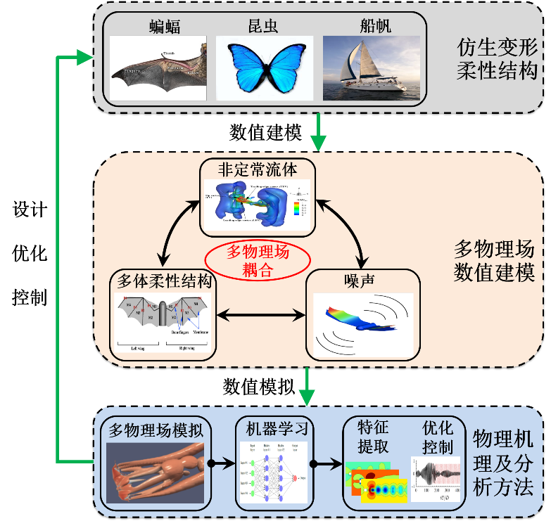研究目的:借助高精度数值模拟方法,耦合机器学习技术,设计具有高气动性能、低噪声和轻质量的智能环保仿生柔性飞行器平台