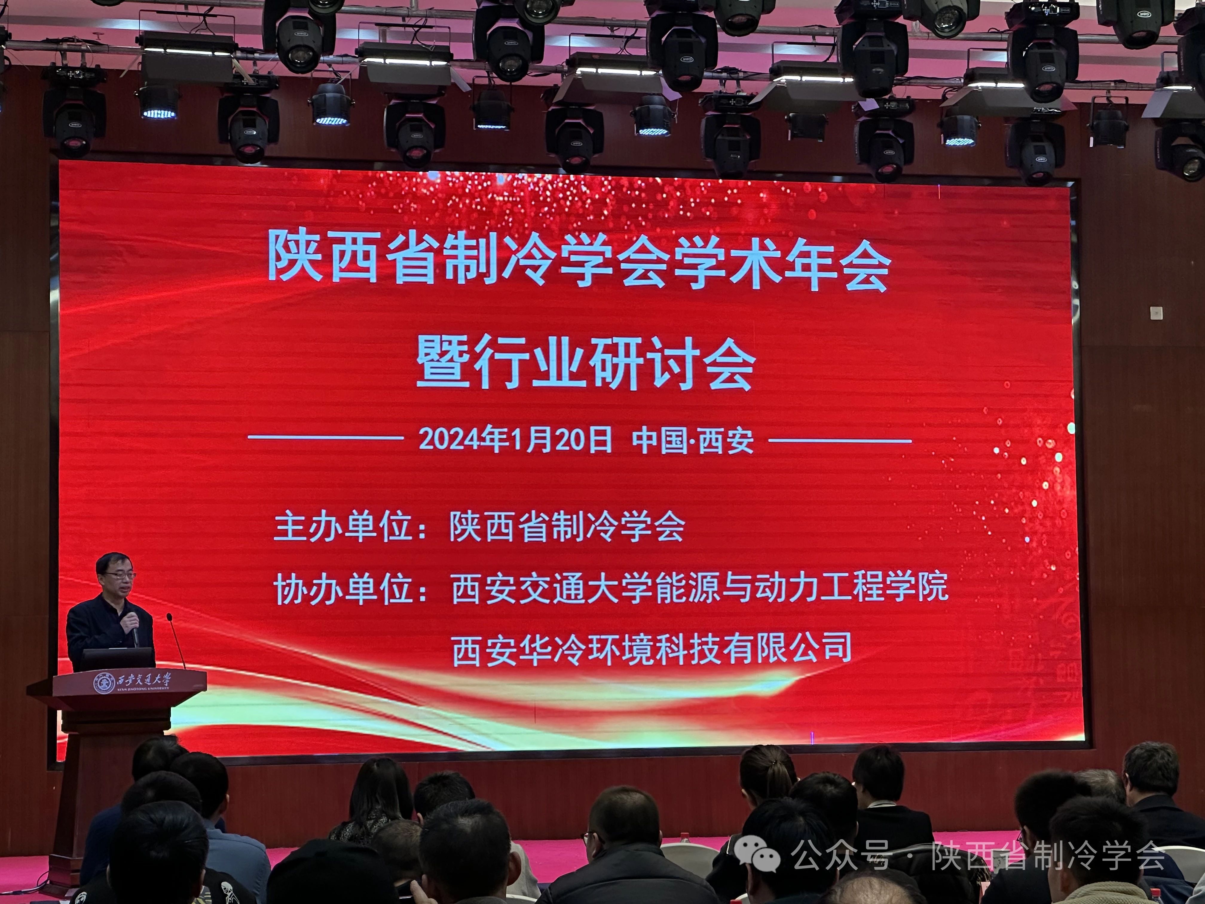 1月20日,由陕西省制冷学会主办,西安交通大学能源与动力工程学院、西安华冷环境科技有限公司协办,陕西省科学技术协会支持的“陕西省制冷学会学术年会暨行业研讨会”在西安盛大开幕。特邀陕西省制冷学会理事/会员代表、陕西省制冷空调及相关领域的专家学者、工程技术人员、制冷企业代表、企业界人士近200人欢聚一堂,研讨制冷、空调及建筑环境控制领域的新技术及发展方向。会议为响应国家“30·60双碳目标”战略,推动陕西省制冷空调技术发展,共同探讨制冷技术发展战略。