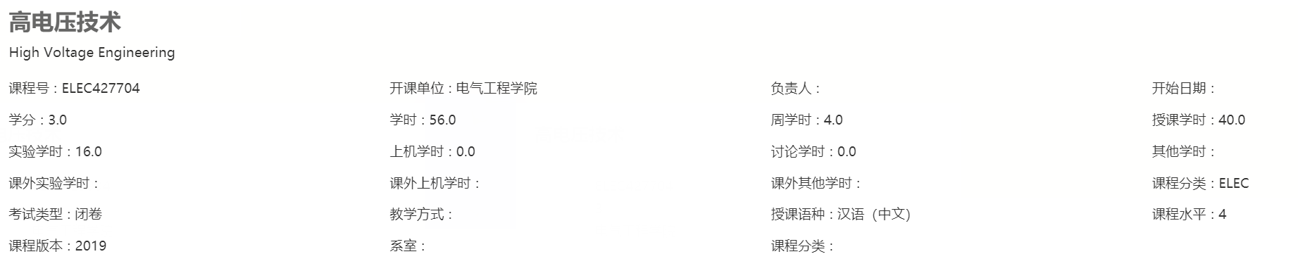 本课程是电气工程专业的一门专业必修课,围绕高电压领域中的基本理论和工程技术问题,开展理论和实验教学,达到如下教学目标