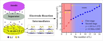 锂硫电池由于具有较高的理论能量密度,被认为是一种很有前途的储能装置。理想的锂硫电池正极应能有效地阻碍锂多硫化物的穿梭效应,以达到更长的循环寿命和更高的倍率性能。本文系统地研究了一种新型的二维过渡金属有机骨架材料六氨基苯配位聚合物(HAB-CPs)作为锂硫电池正极材料。结合vdW相互作用和溶剂模型的第一性原理计算表明,V-HAB-CP对穿梭效具有最好的抑制能力。量子电导(G)和态密度(DOS)计算表明,V-HAB-CPs在整个充电过程中保持了良好的导电性。模拟还发现电极反应前后V-HAB-CP的体积变化很小(约3.06%),可以很好地解决锂硫电池的体积膨胀问题。同时,当电极反应产物为Li16S8/V-HAB-CP时,能量密度达到808.465 Wh kg-1,因此V-HAB-CP是一种理想的正极材料,有望在未来的锂硫电池系统中得到应用。