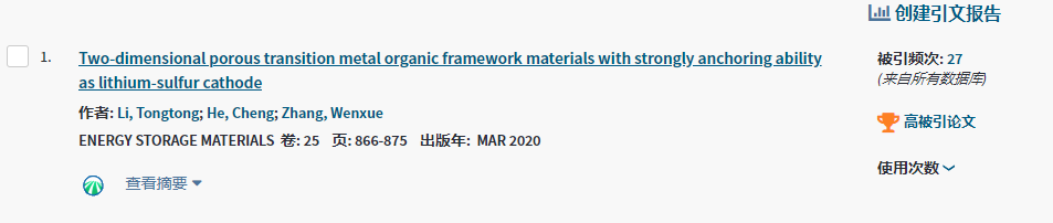 课题组在MOF材料用于锂硫电池的模拟研究方面取得最新进展。2020年1月23日,李彤彤同学在ENERGY STORAGE MATERIALS期刊上(工程技术类国际TOP期刊,)发表了题为“Two-dimensional Porous Transition Metal Organic Framework Materials with Strongly Anchoring Ability as Lithium-Sulfur Cathode”的研究论文。该论文入选ESI1%高被引