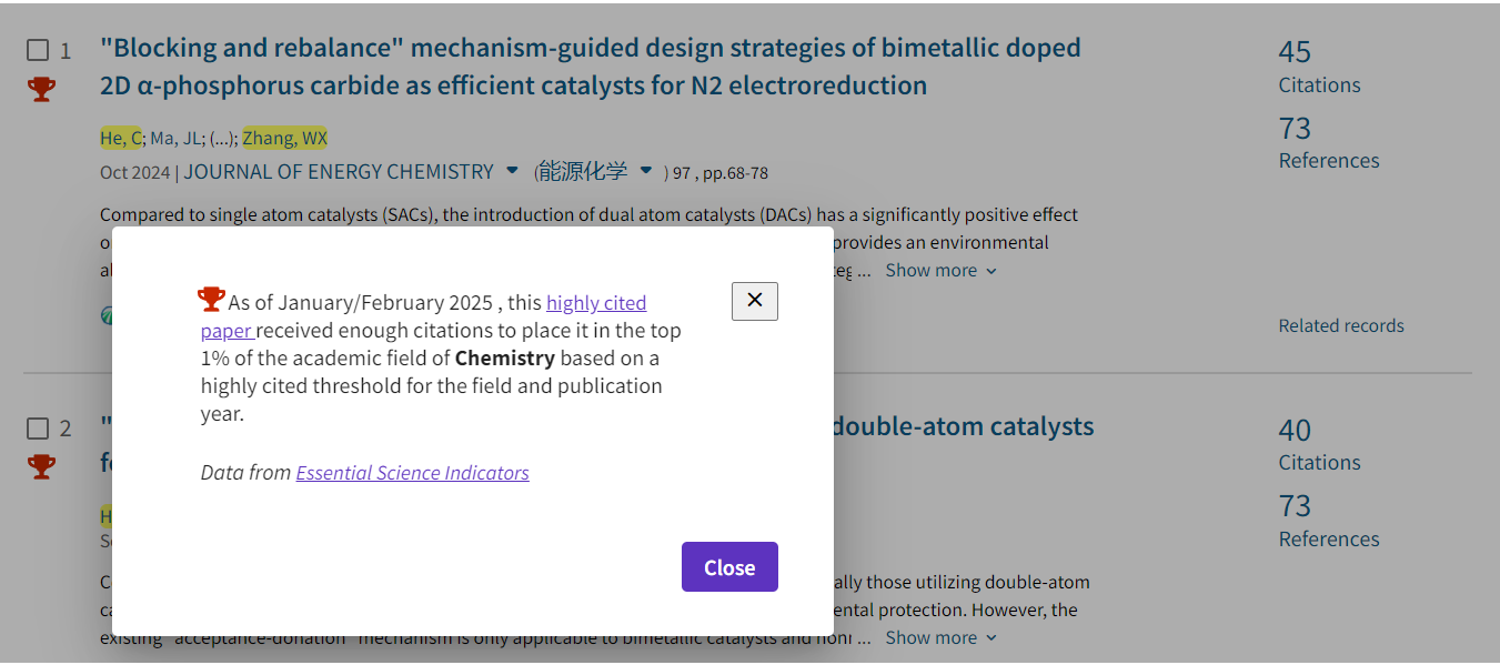 - JEC论文“双金属掺杂磷碳化物作为氮还原高效催化剂的“闭锁和再平衡”机制导向设计策略”进入ESI 1%