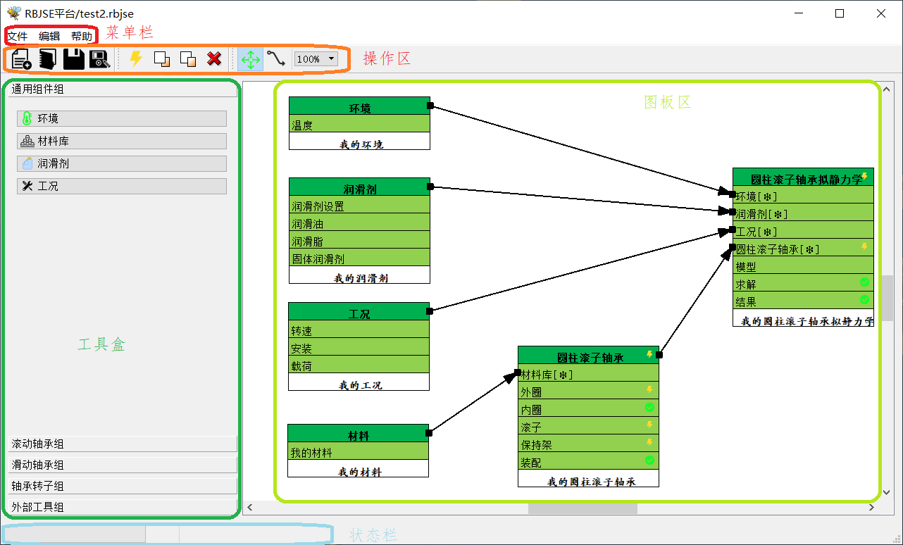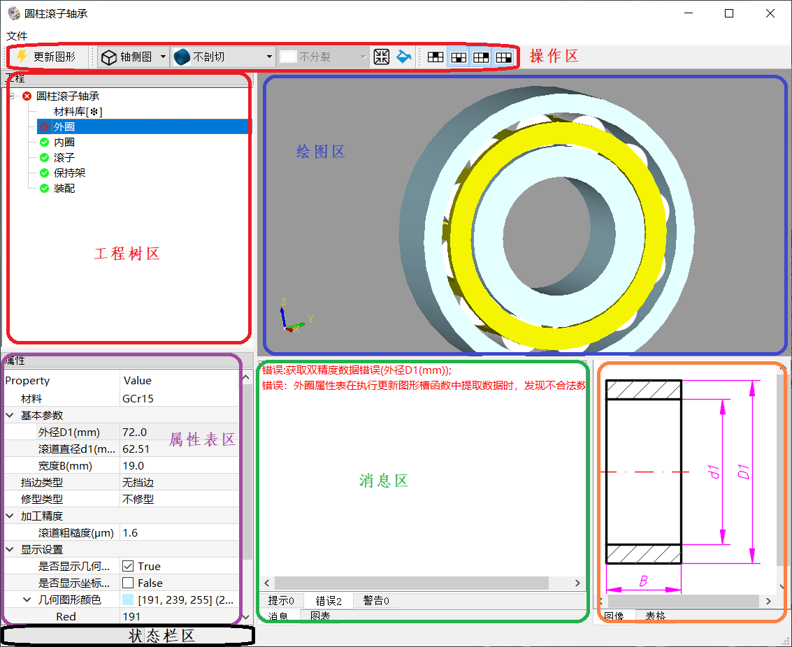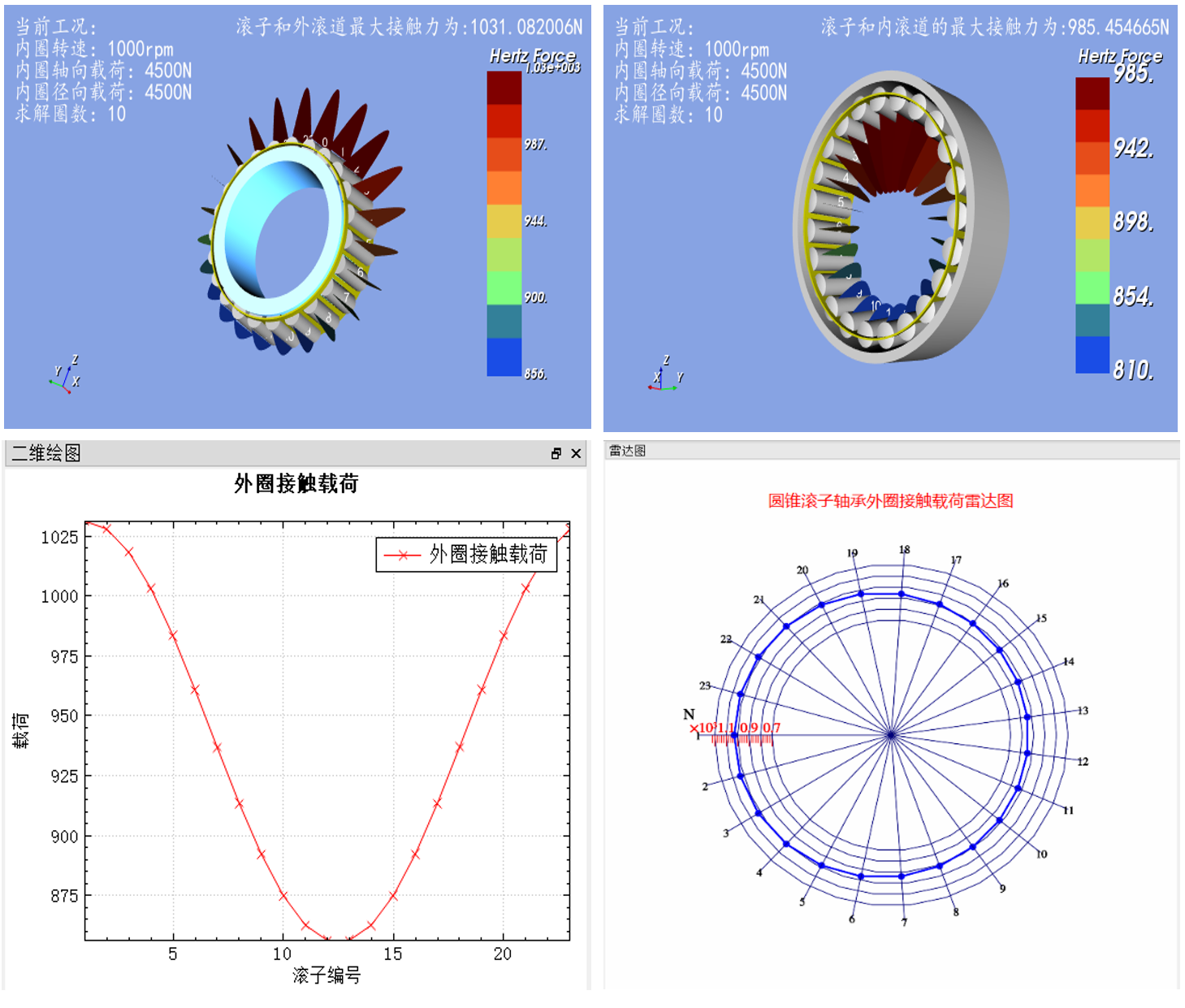 该软件具备:滚动轴承拟静力学分析功能和动力学分析功能以及可视化展示结果功能。