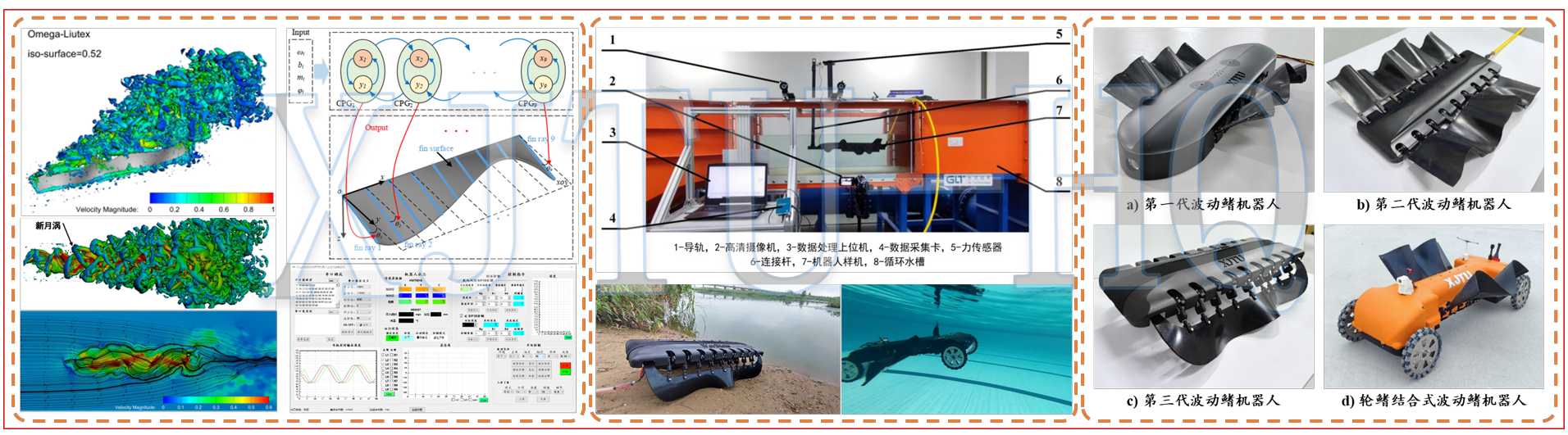 针对水陆跨域无人装备任务需求,“师法自然”,效仿水下生物腹鳍波动式推进机理,设计水陆两栖多模式高机动仿生机器人新型结构和运动机构,探究水下、水面和陆地高性能三维波动推进理论和控制模型,构建面向多任务的水陆两栖仿生机器人软硬件系统,实现水陆两栖和极地环境高性能航行,从而提升两栖机器人的环境适应性和作业能力。