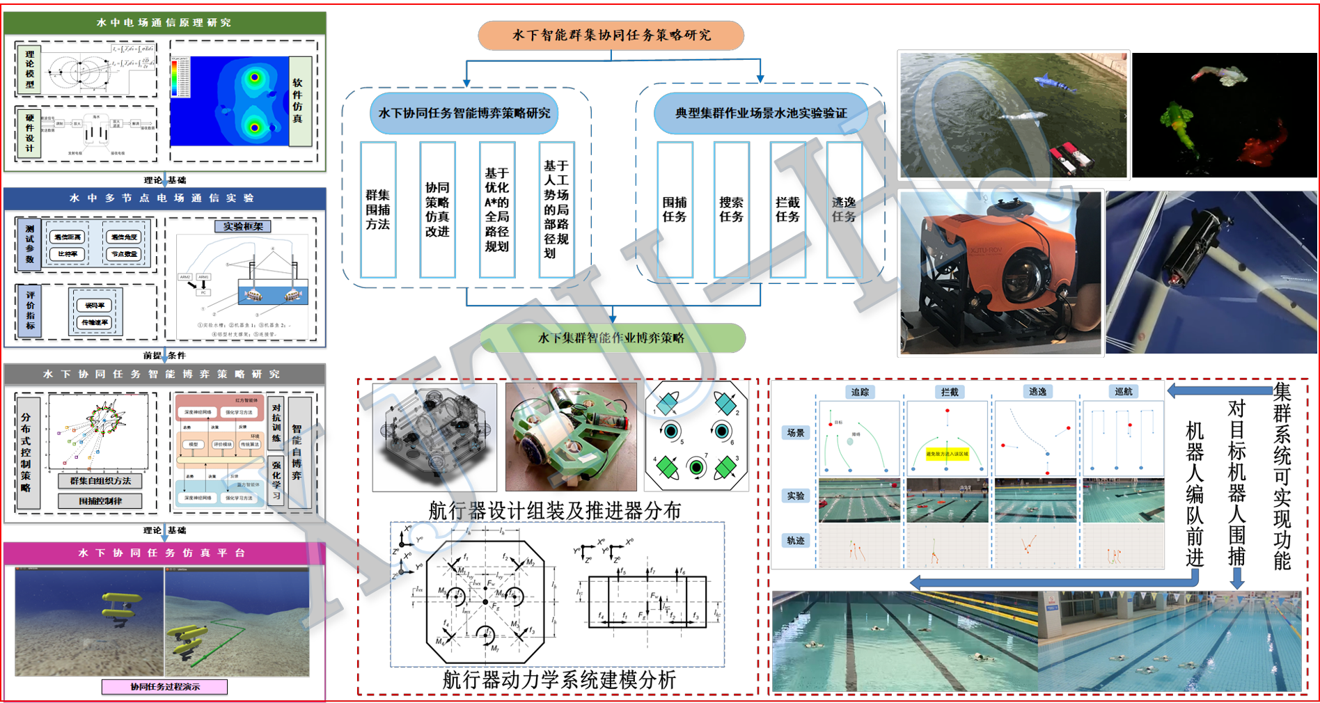 针对水下机器人协同作业和集群任务需求,优化设计多构型水下机器人,融合RRT*算法、人工势场法、KM最优匹配算法、分布式模型预测控制等方法,构建具有自组织、抗干扰能力的水下机器人编队系统,从而实现多个水下机器人跨平台分布式协作,提升水下多智能体编队的路径规划与围捕作业等系统性能。