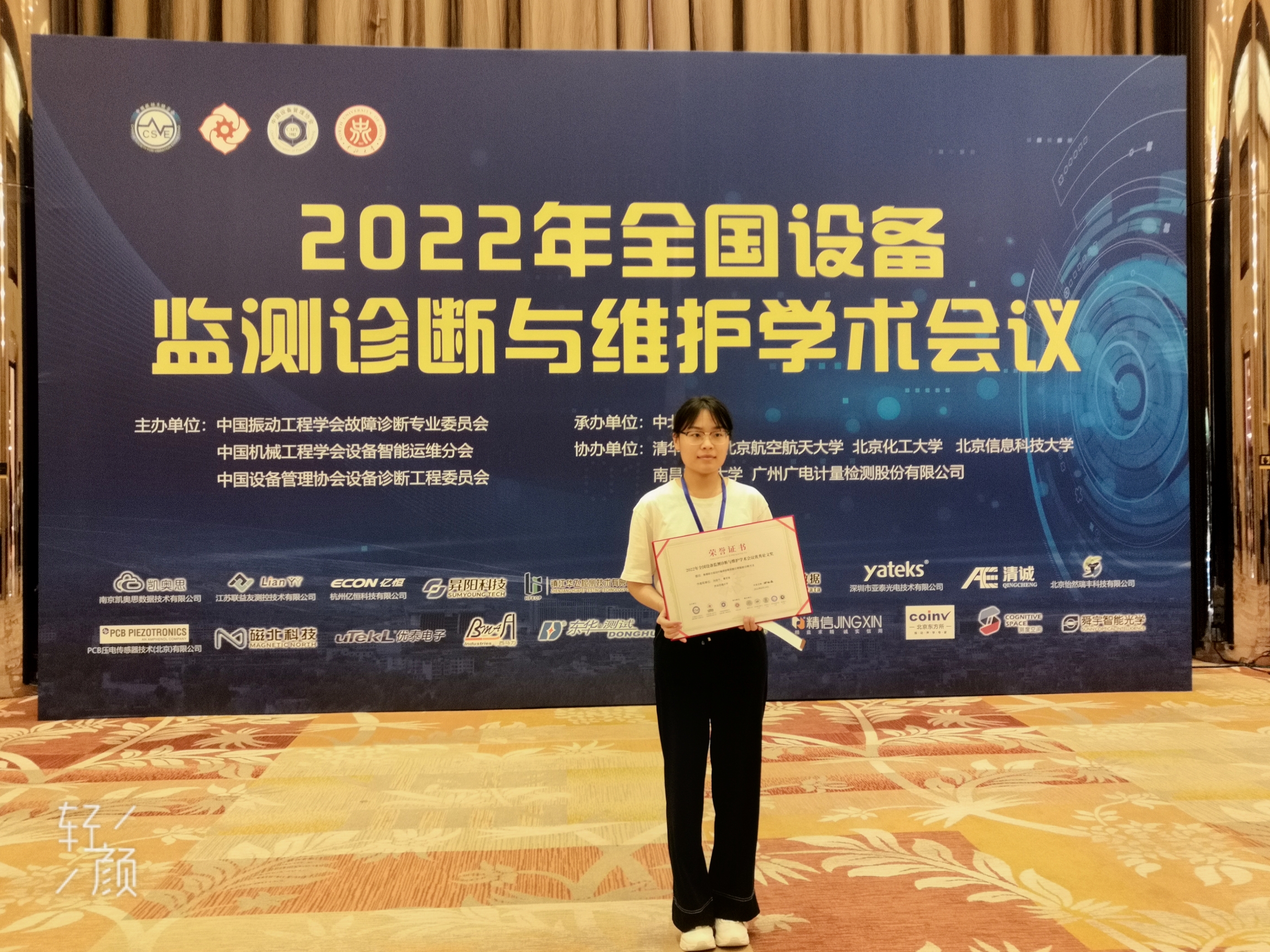2022年8月,实验室老师魏江、博士生刘佳宁、博士生孙亚超参加2022年全国设备监测诊断与维护学术会议暨第十八届全国设备故障诊断学术会议、第二十届全国设备监测与诊断学术会议、2022年全国设备诊断工程会议,并投递会议论文,题目分别为《APU齿轮传动系统参数化有限元建模与动力学分析研究》、《数模联合驱动的轴承故障深度迁移智能诊断方法》、《间隙条件下齿轮-花键系统动力学建模及动态特征分析》,其中博士生刘佳宁所投论文荣获会议优秀论文奖。