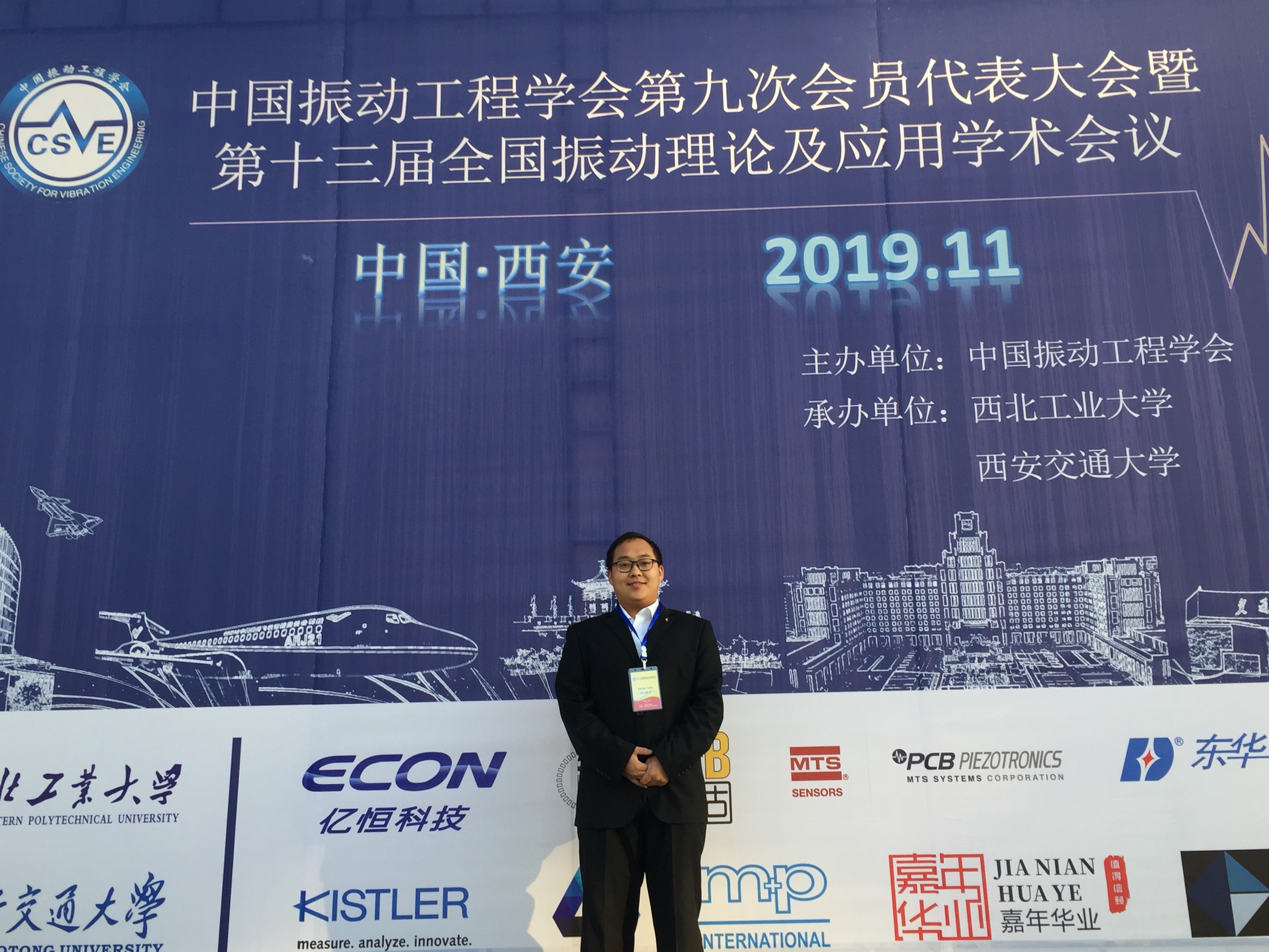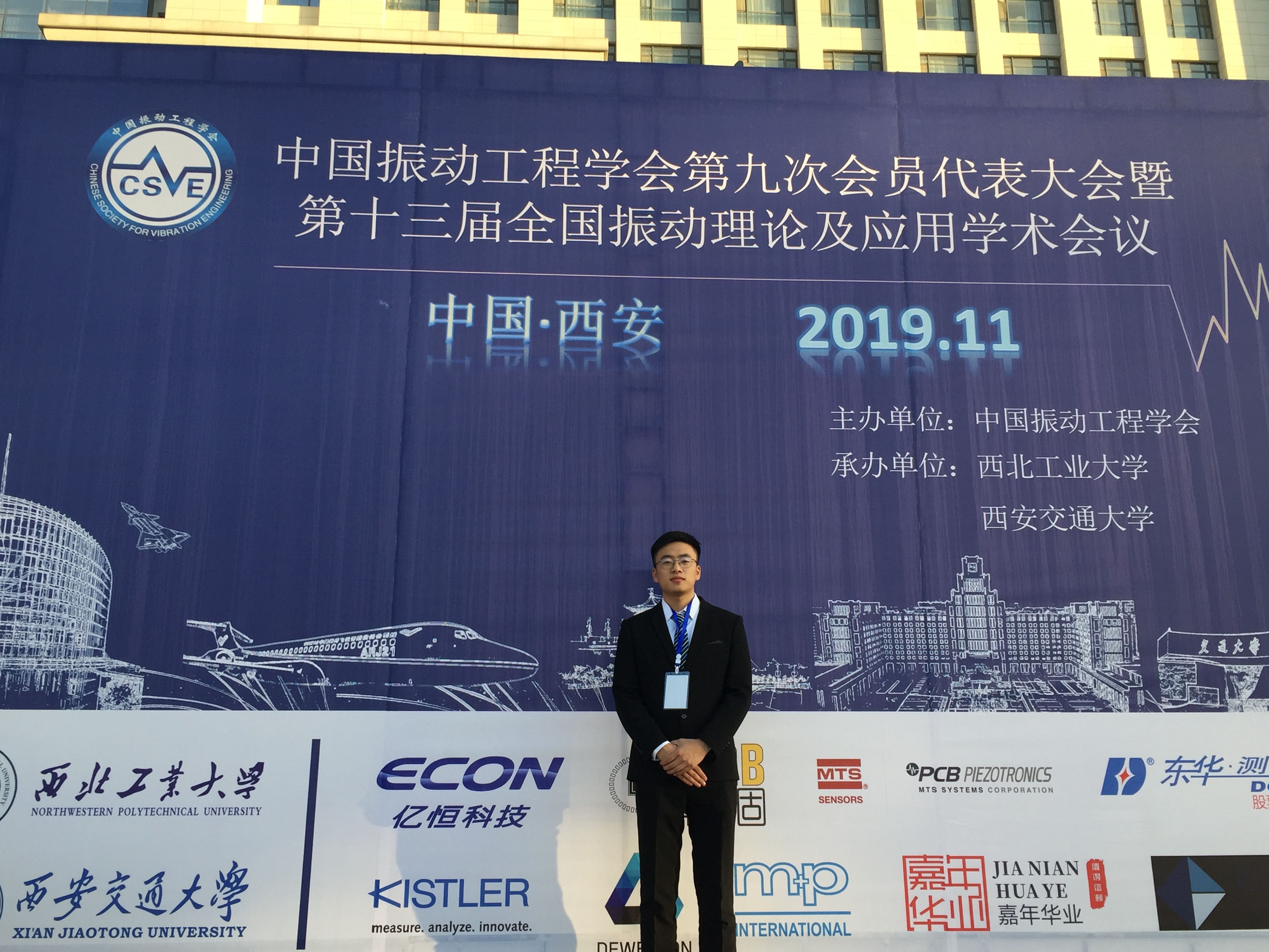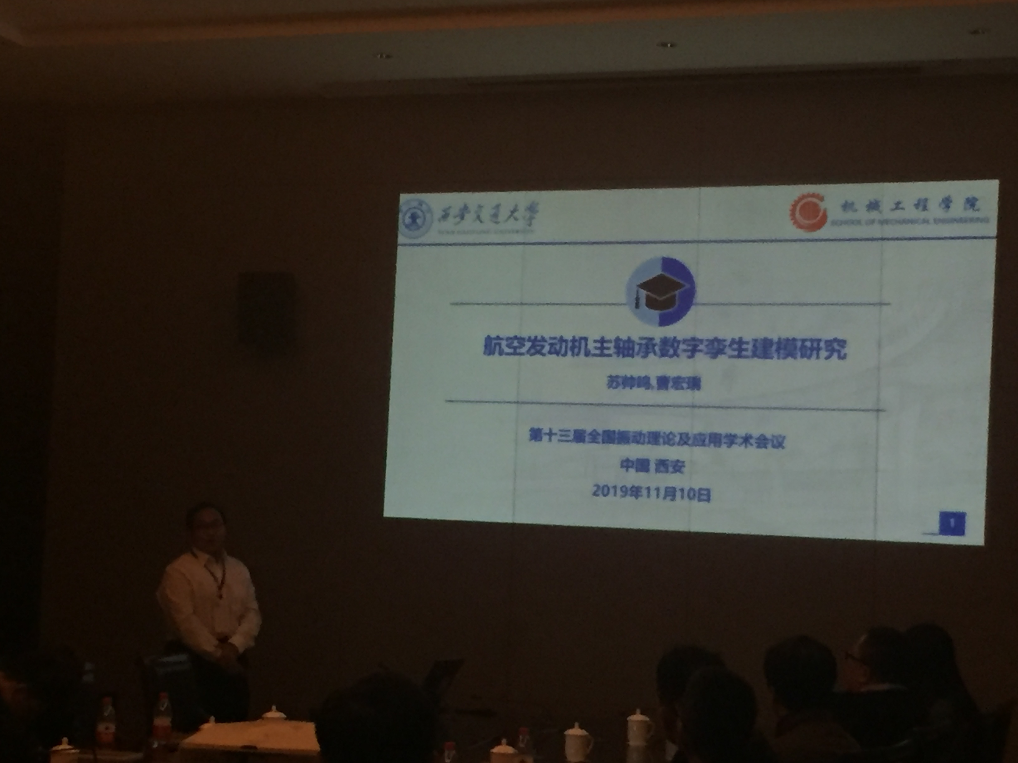 2019年11月,硕士生苏帅鸣参加中国振动工程学会第九次会员代表大会暨第十三届全国振动理论及应用学术会议并作报告。题目为《航空发动机主轴承数字孪生建模研究》。